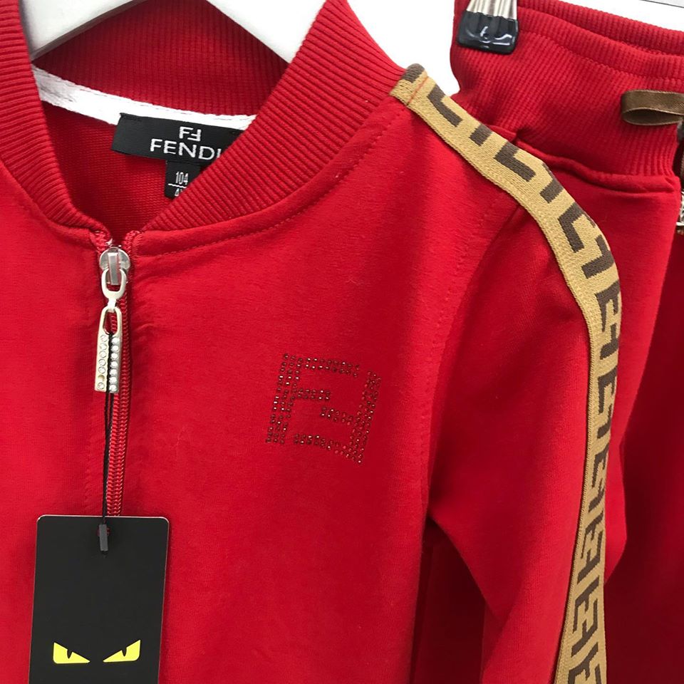 Спортивный костюм Fendi LUX-30074 представляет собой стильный комплект, состоящий из куртки-бомбера на молнии и брюк. Дизайн костюма выполнен в ярком красном цвете, дополненном характерным для бренда узором Fendi по бокам рукавов и штанин, а также фирменным логотипом на груди. Эта модель идеально подходит для создания модного спортивного образа.
