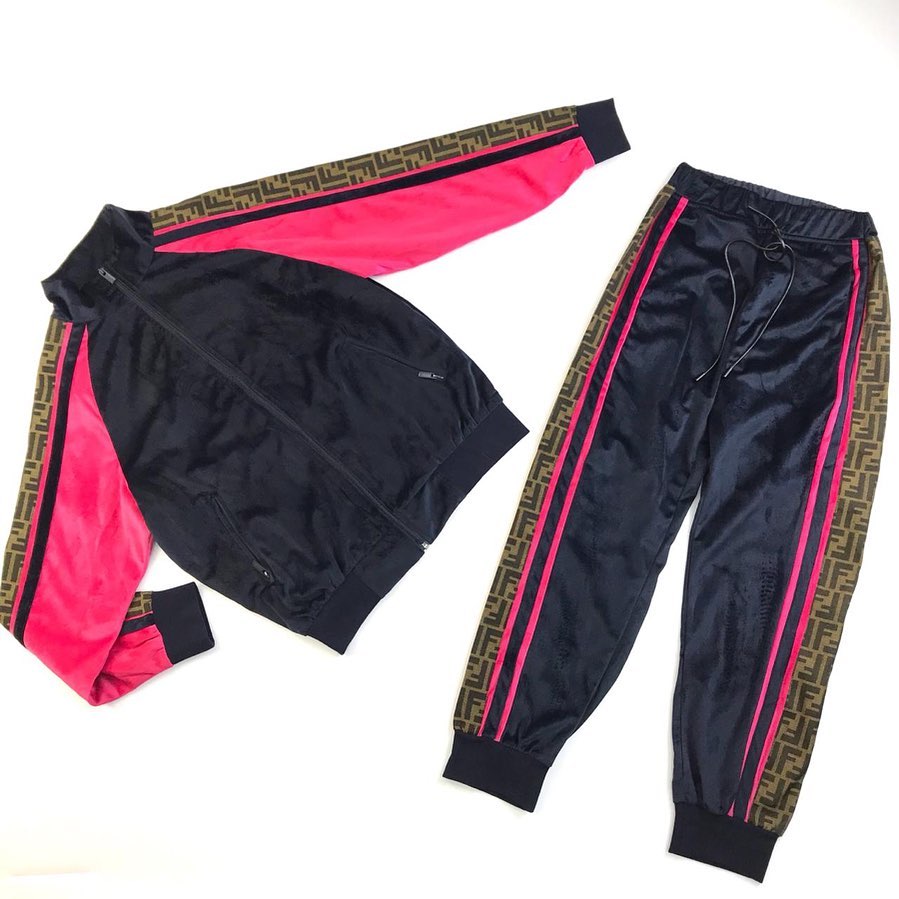 Этот спортивный костюм Fendi LUX-20137 представляет собой стильное сочетание спортивного комфорта и узнаваемого дизайна бренда. Костюм выполнен в классическом спортивном силуэте, но с яркими акцентами, делающими его модным выбором для повседневной носки. Сочетание черного, розового и фирменного коричневого монограммного узора Fendi придает ему особый шик.