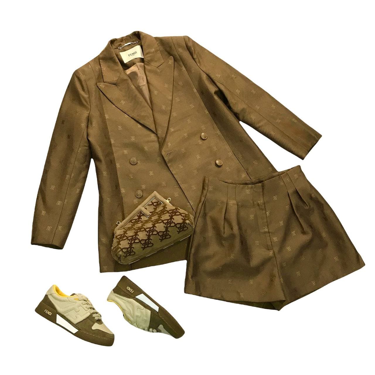 Элегантный женский костюм Fendi LUX-62617 – это воплощение роскоши и утонченного стиля. Комплект, состоящий из пиджака и шорт, выполнен в классическом коричневом цвете с узнаваемым монограммным принтом бренда. Этот костюм идеально подойдет для создания изысканных образов в стиле casual chic или для особых случаев.