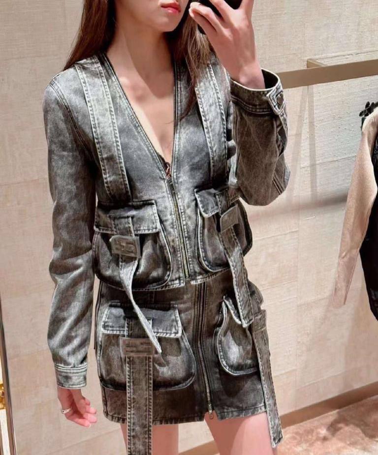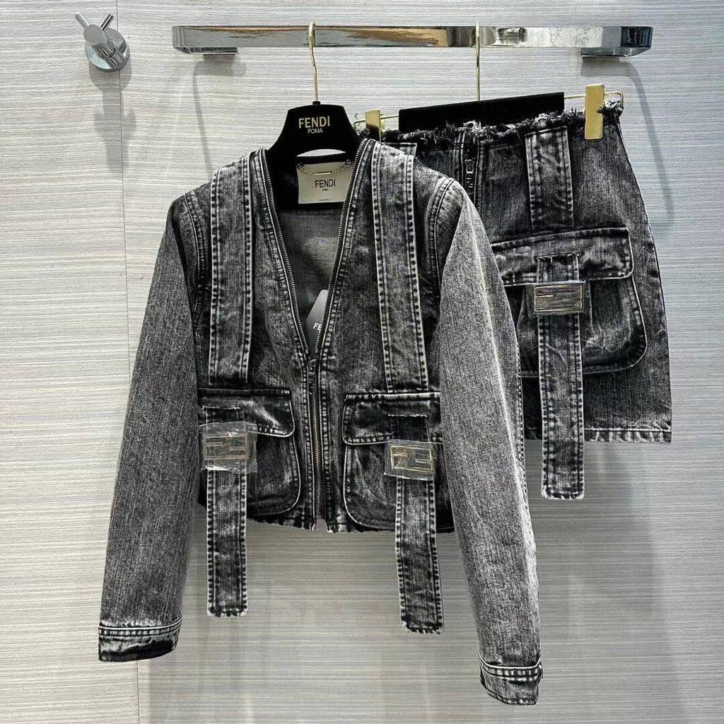 Костюм женский Fendi LUX-87207 представляет собой стильный комплект, включающий в себя куртку и юбку. Костюм выполнен в серых тонах с эффектом денима, создавая уникальный и современный образ. Этот комплект идеально подойдет для создания повседневных и вечерних образов.