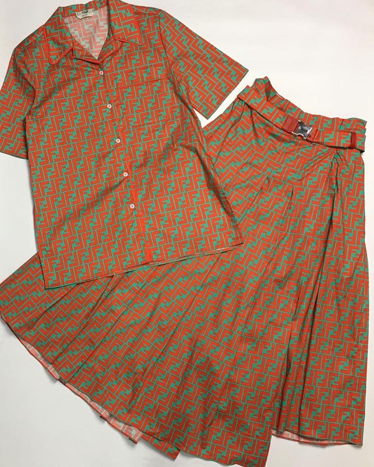 Эффектный юбочный костюм Fendi LUX-12339, выполненный в ярком оранжево-бирюзовом цвете с узнаваемым монограммным принтом FF, представляет собой стильное решение для создания запоминающихся образов. Комплект состоит из рубашки с коротким рукавом и отложным воротником, а также юбки с поясом и пряжкой, подчеркивающей талию. Этот костюм идеально подойдет для тех, кто ценит эксклюзивность и хочет добавить яркий акцент в свой гардероб.