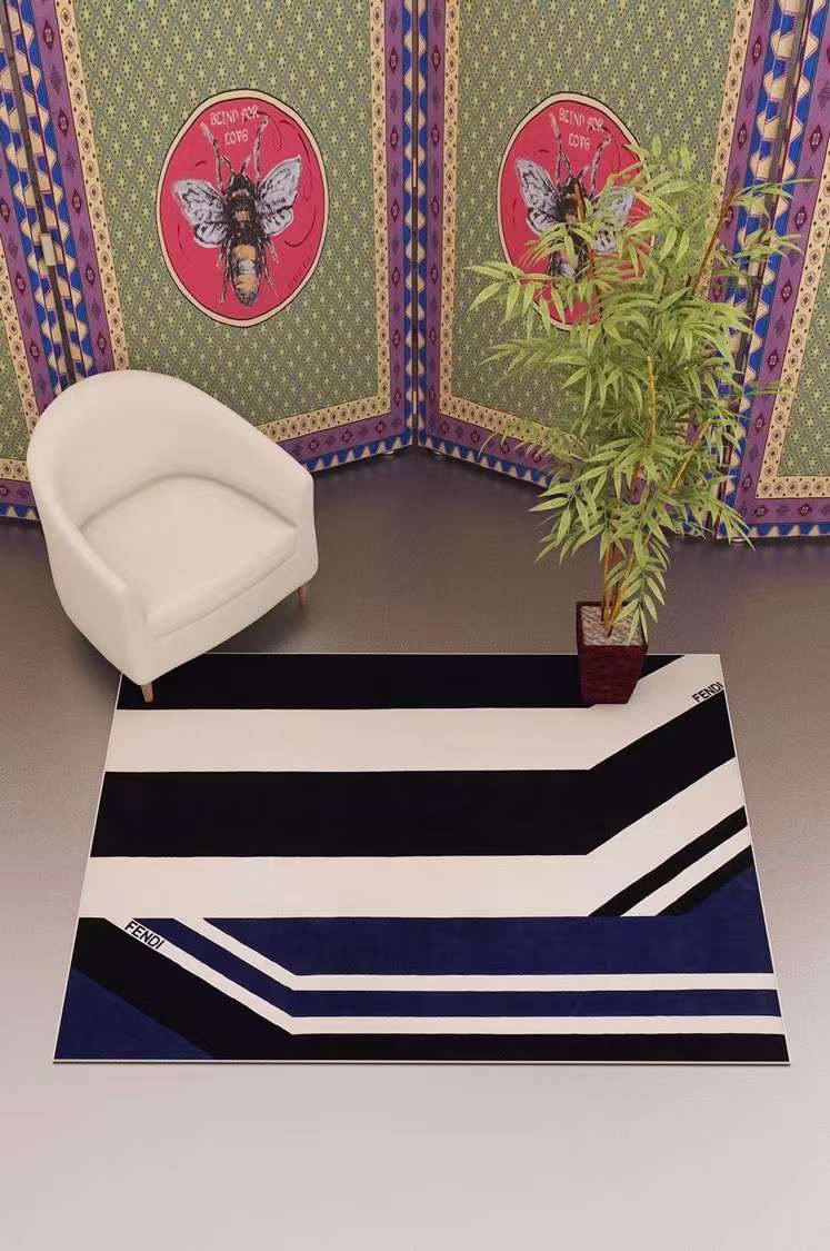 Ковер 160х230см Fendi LUX-112903 — это стильный аксессуар, который добавит изысканности в любой интерьер. Ковер выполнен в современном стиле с геометрическим дизайном, сочетающим белые, синие и черные полосы. Прекрасно подойдет для гостиной или спальни, создавая атмосферу уюта и комфорта.
