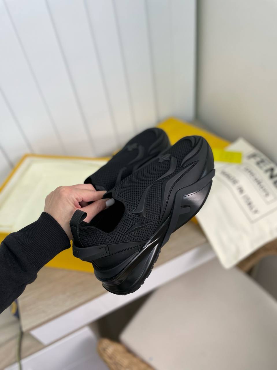 Представлены стильные черные кроссовки Fendi LUX-68455, выполненные в современном дизайне. Эта модель идеально сочетает в себе спортивный стиль и элегантность, что делает ее универсальным выбором для повседневных образов. Акцент на динамичных линиях и качественных материалах подчеркивает премиальный статус бренда.