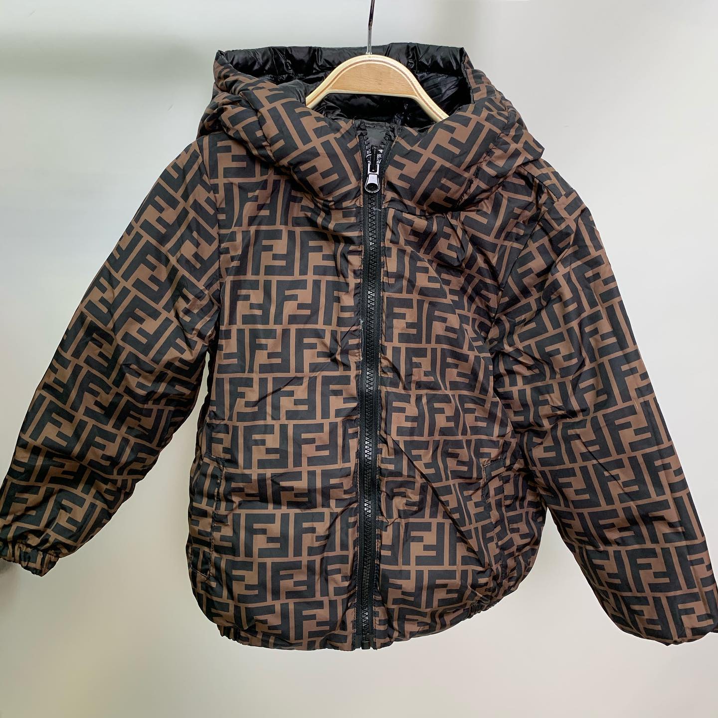 Эта стильная куртка Fendi LUX-42971, выполненная в характерном коричневом цвете с узнаваемым монограммным принтом FF, является прекрасным примером современной верхней одежды. Куртка с капюшоном и застежкой-молнией предлагает удобство и защиту от непогоды. Ее дизайн подходит как для повседневного ношения, так и для создания модных образов.