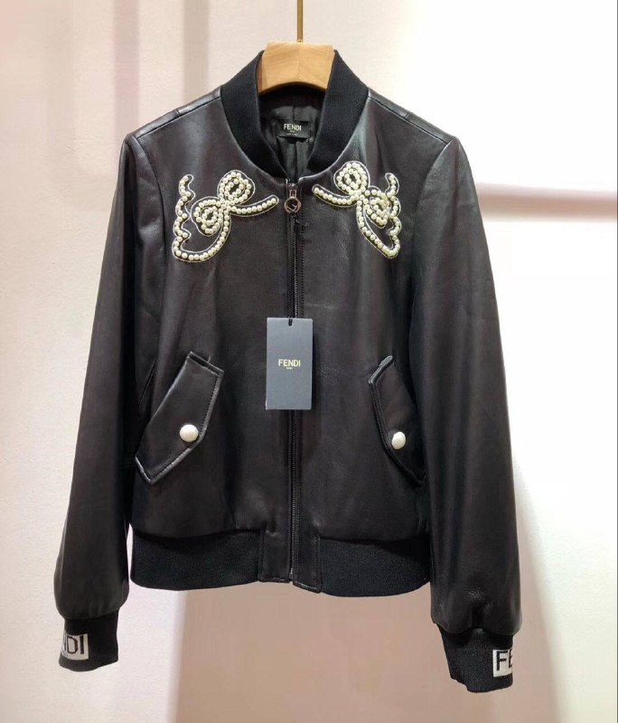 Эта элегантная куртка Fendi LUX-55460 выполнена в стиле бомбер, сочетая в себе классические элементы и роскошные детали. Черный цвет и гладкая фактура кожи придают изделию утонченный вид. Декоративные элементы из жемчуга и золотистой нити на груди добавляют изысканности и привлекают внимание.