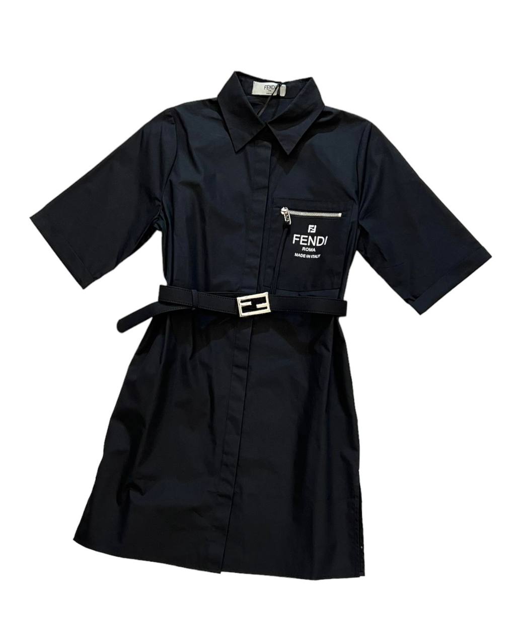 Платье Fendi LUX-88027 — это элегантное платье-рубашка черного цвета, которое сочетает в себе классический стиль и современный дизайн. Модель выполнена в прямом крое с акцентом на талии с помощью пояса. Универсальный предмет гардероба для различных случаев.