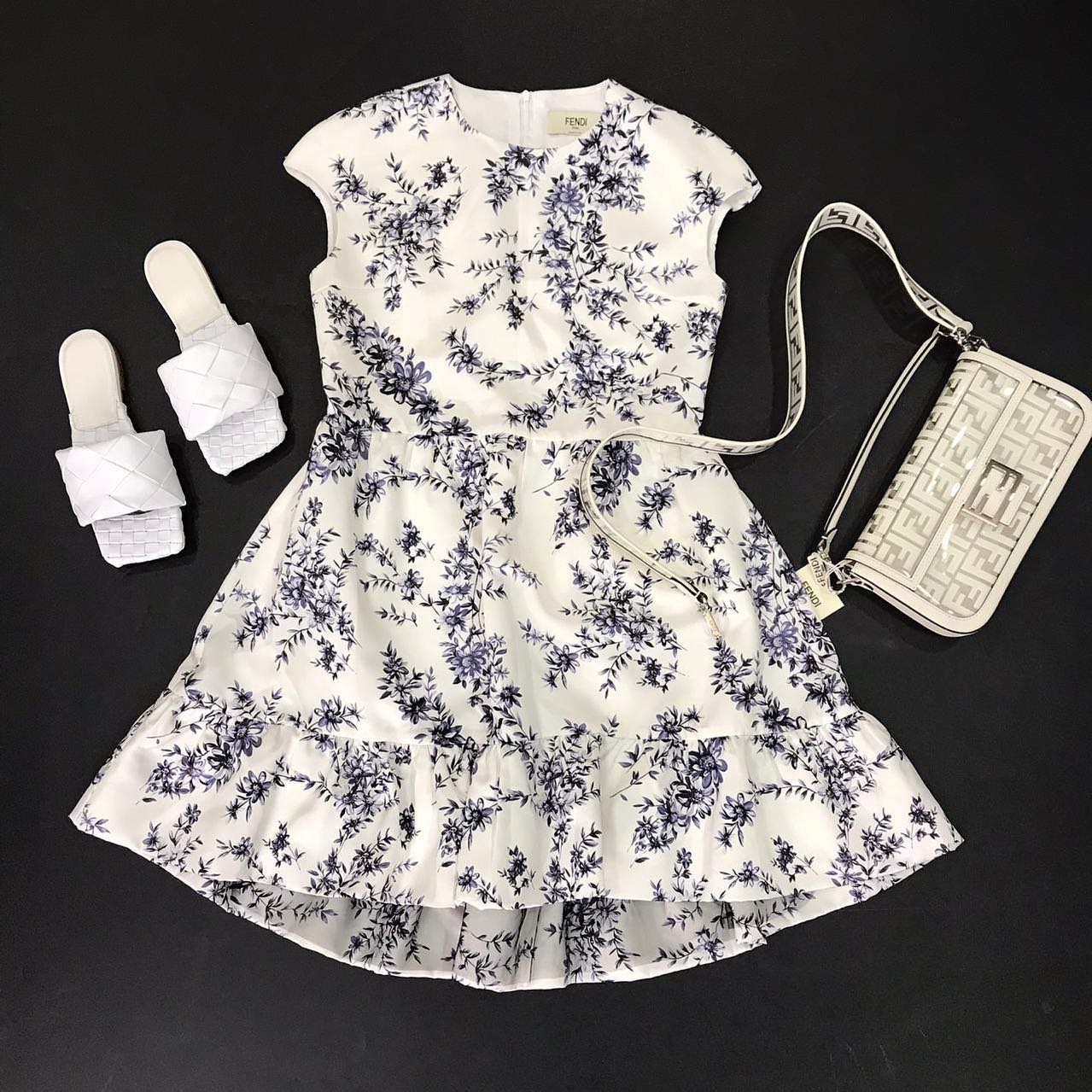 Это элегантное платье Fendi LUX-33315, выполненное в женственном стиле, идеально подойдет для летних прогулок и особых случаев. Его утонченный цветочный принт в сине-белых тонах придает образу нежности и романтичности. Фасон платья с расклешенной юбкой и оборками добавляет легкости и воздушности.