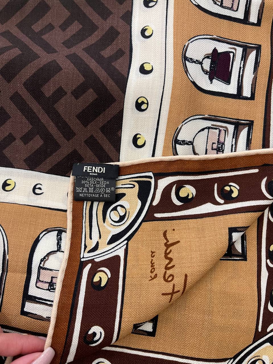Платок Fendi LUX-99698 представляет собой стильный аксессуар, который подчеркнет ваш безупречный вкус. Платок выполнен в коричневых тонах, украшен фирменным принтом с логотипом бренда, а также изображениями сумок и логотипом бренда. Этот платок станет прекрасным дополнением к любому образу.