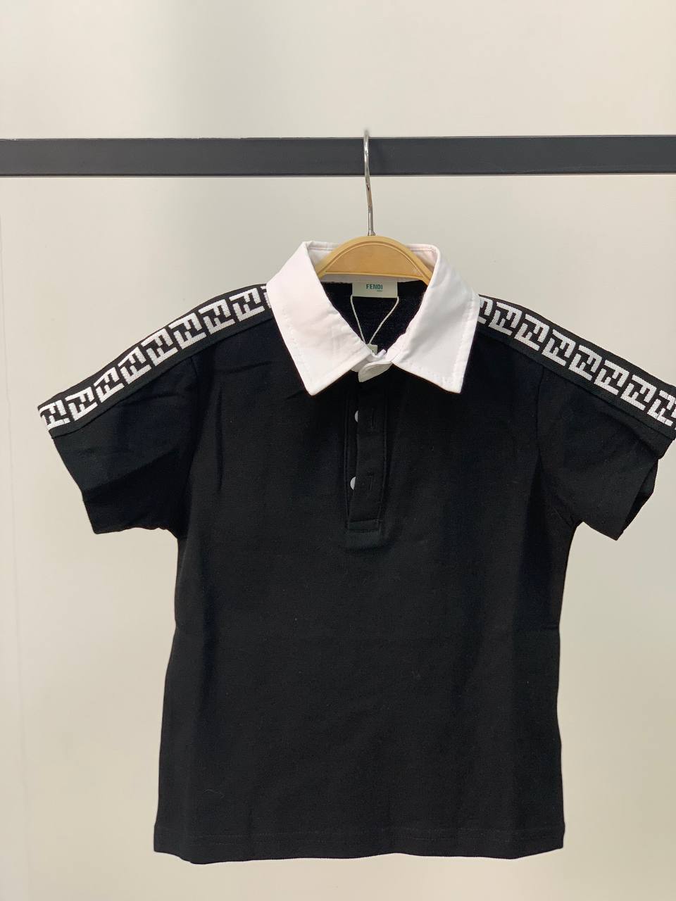Поло Fendi LUX-68234 – это стильная и комфортная модель, идеально подходящая для повседневного гардероба. Черный цвет в сочетании с контрастным белым воротником и декоративной лентой с фирменным узором "FF" по краям рукавов и воротника придает изделию узнаваемый и элегантный вид.