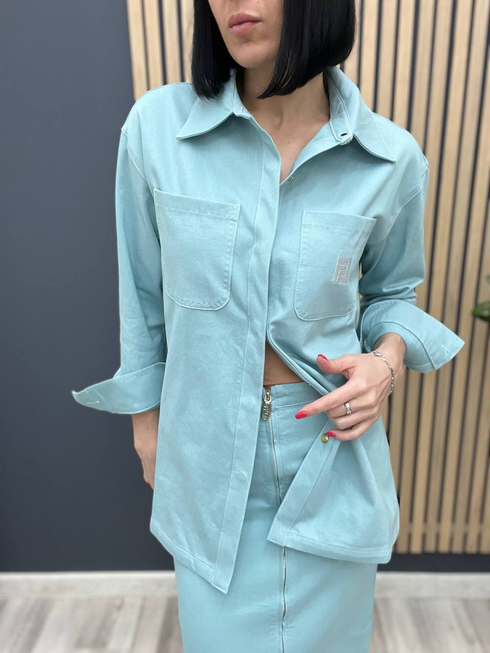 Рубашка Fendi LUX-104581 — это стильный предмет гардероба, который сочетает в себе элегантность и современный дизайн. Нежно-голубой цвет рубашки придает ей свежий и привлекательный вид. Она идеально подходит для создания как повседневных, так и более формальных образов.