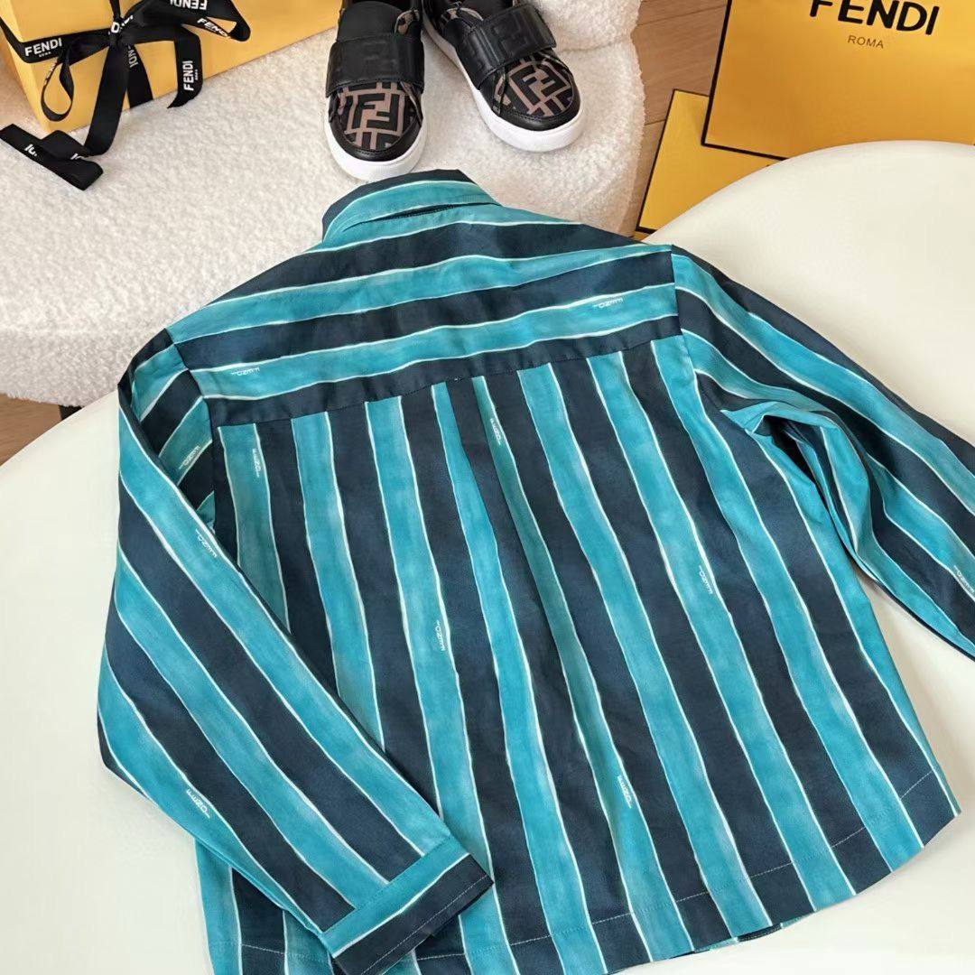 Рубашка Fendi LUX-116483 – это стильный предмет гардероба для мальчика, выполненный в современном стиле. Она украшена вертикальными полосами синего и бирюзового цвета, что придает ей свежий и яркий вид. Этот предмет одежды идеально подойдет для создания повседневных образов.