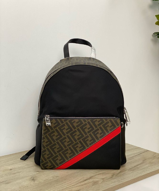 Рюкзак Fendi LUX-54928 представляет собой стильный аксессуар, сочетающий в себе узнаваемый дизайн бренда и современную функциональность. Модель выполнена в сочетании черного текстиля с фирменным узором FF Fendi, дополненная яркой красной полосой, что придает ей динамичный и модный вид. Идеален для тех, кто ценит элегантность и практичность в повседневной жизни.