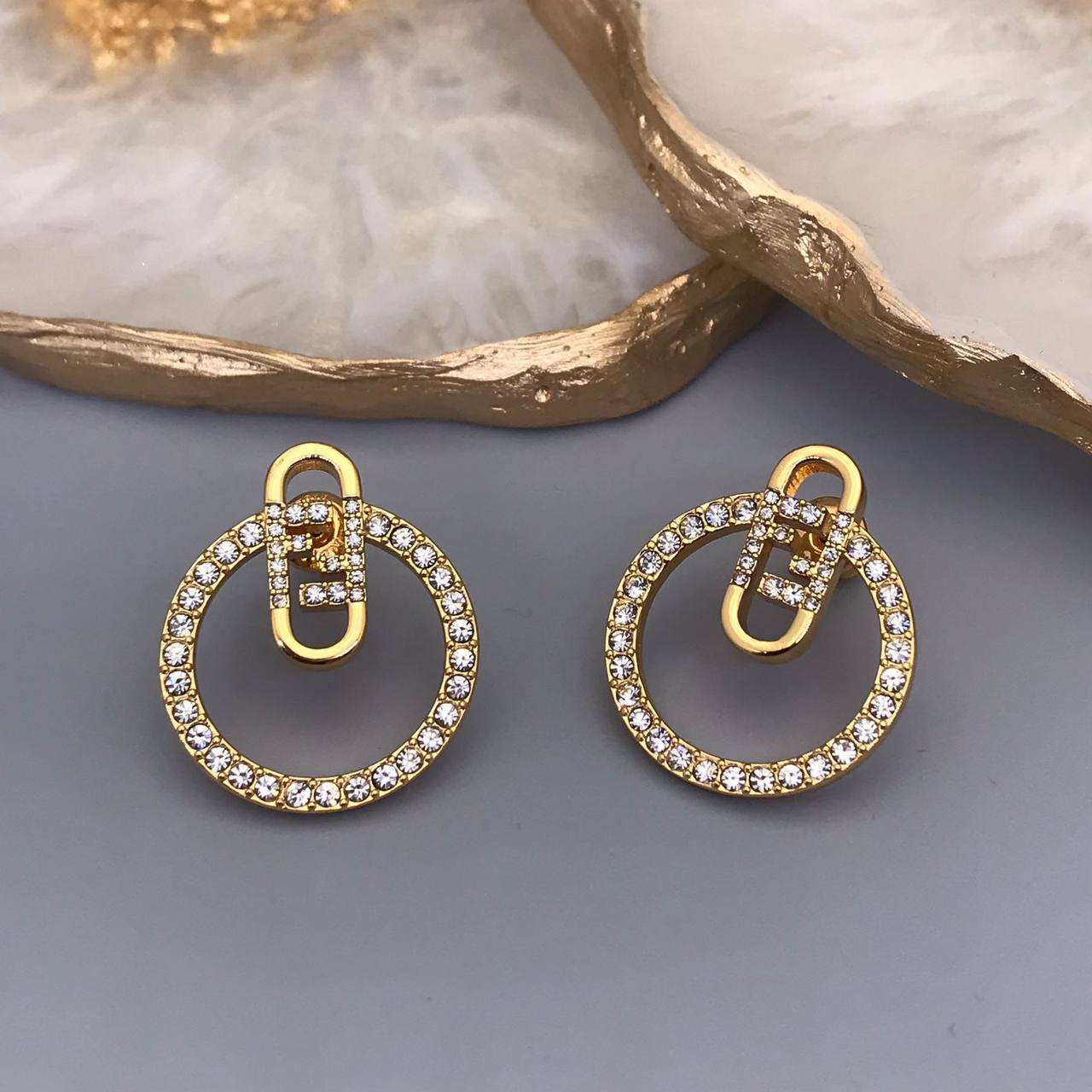 Серьги Fendi LUX-83493 — это элегантные серьги-кольца, выполненные в узнаваемом стиле бренда. Серьги имеют золотистый оттенок и украшены сверкающими камнями, что придает им роскошный вид. Этот аксессуар станет прекрасным дополнением к любому образу.