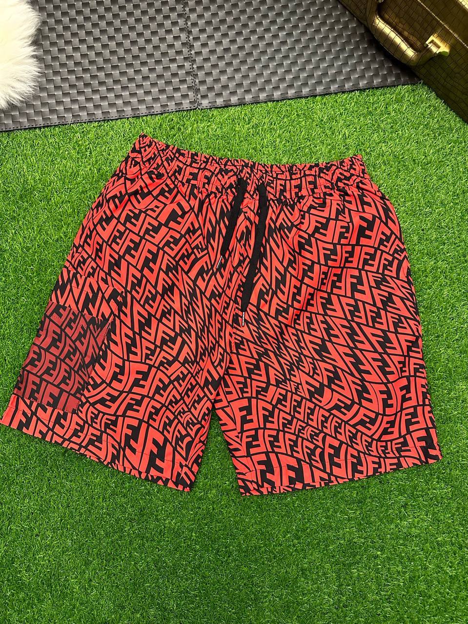 Шорты Fendi LUX-91246 - это стильная модель в узнаваемом дизайне бренда. Шорты выполнены в ярком красно-черном цвете с узнаваемым логотипом по всей поверхности. Идеально подходят для создания модных и комфортных образов в летний сезон.