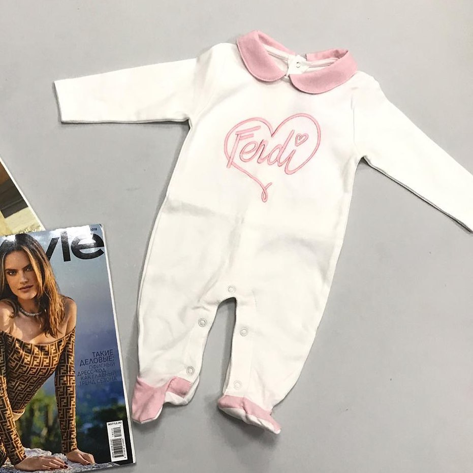 Слип Fendi LUX-16368 — это очаровательный и стильный предмет одежды для самых маленьких. Этот детский слип от Fendi выполнен в классическом белом цвете с нежным розовым воротничком и отделкой на стопах, что придает ему изысканный вид. На груди расположен крупный вышитый логотип Fendi в форме сердца, выполненный в розовых тонах, подчеркивающий премиальный бренд.