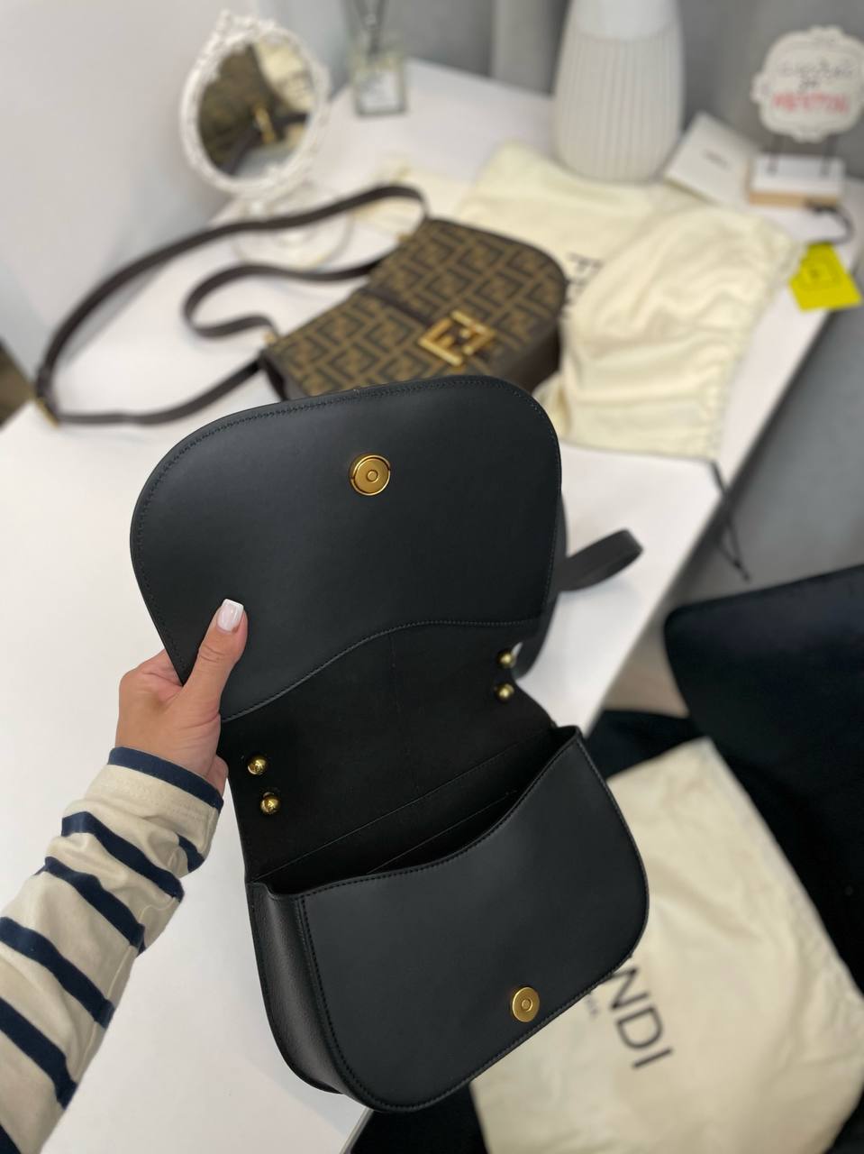 Сумка женская Fendi LUX-96201 — это элегантная сумка через плечо от известного бренда. Черный цвет, минималистичный дизайн и характерная фурнитура. Сумка подойдет для повседневного использования и для особых случаев, подчеркивая индивидуальный стиль своей обладательницы.