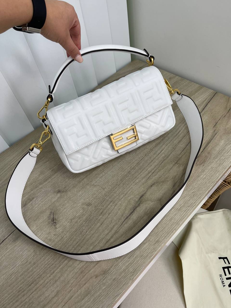 Сумка женская Fendi LUX-79565 — это элегантный аксессуар в стиле casual. Белый цвет сумки и рельефный узор создают изысканный образ. Идеально подходит для повседневного использования, дополняя различные стили одежды.