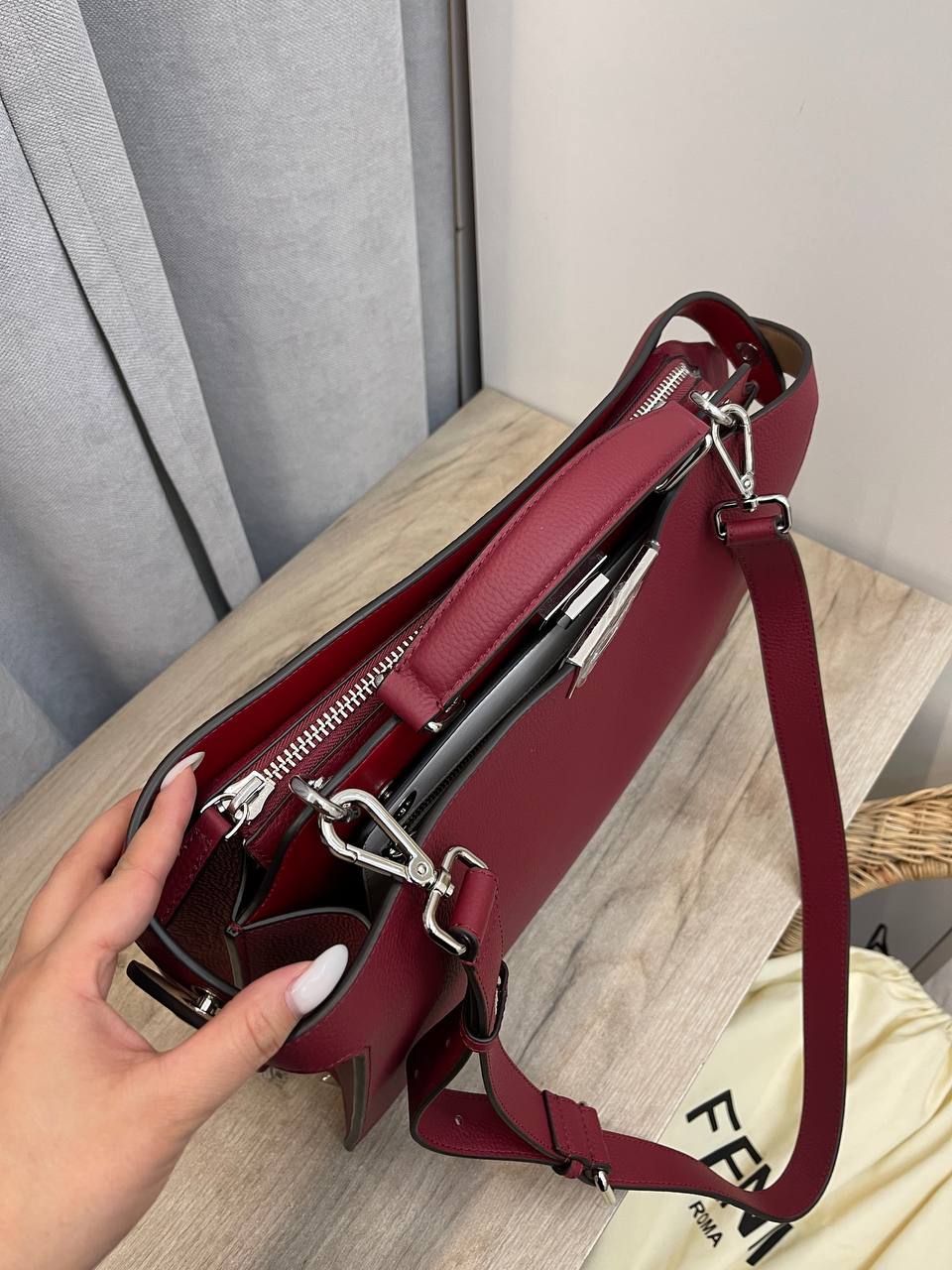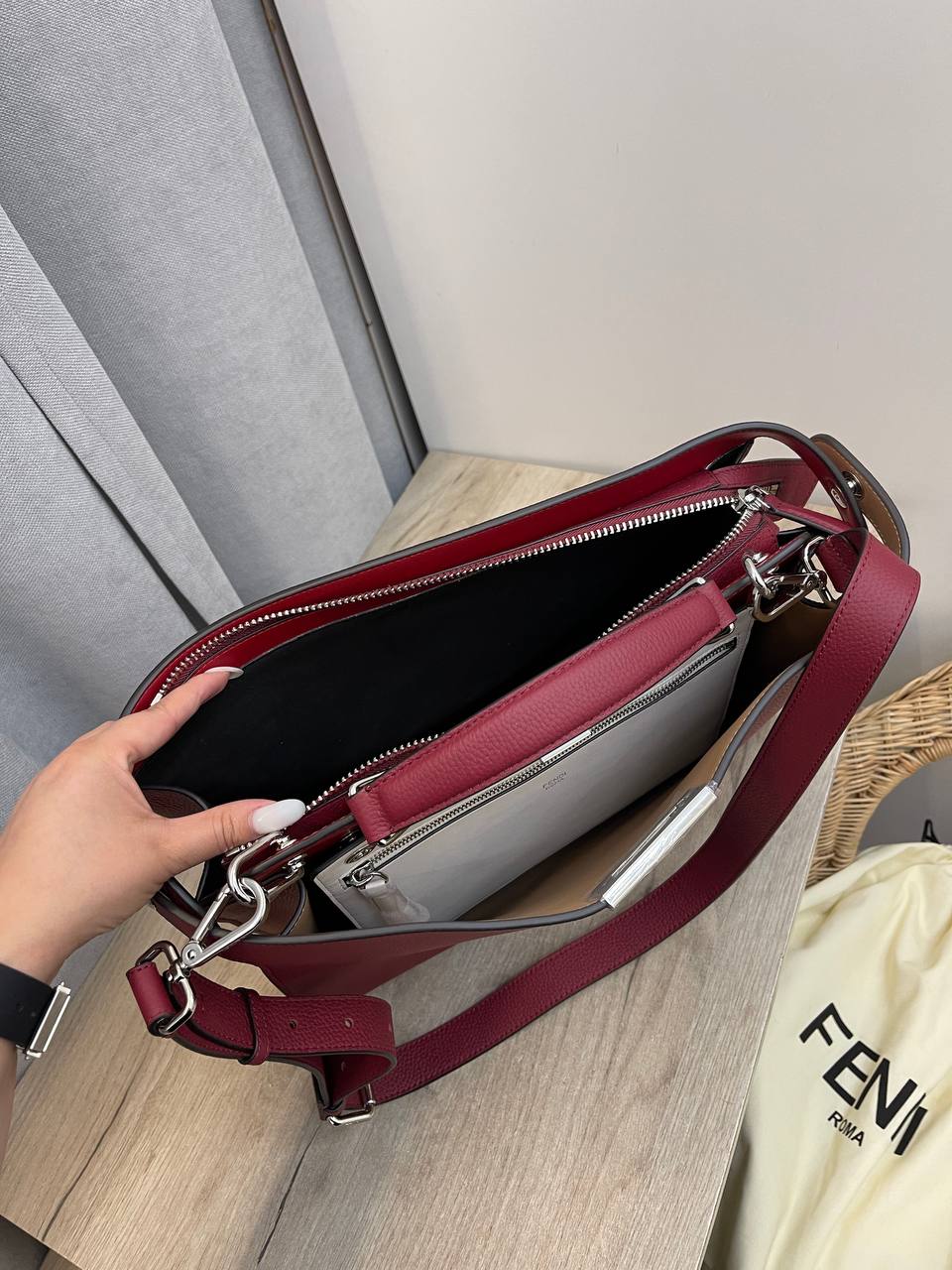 Сумка женская Fendi LUX-98778 – воплощение элегантности и стиля. Эта сумка выполнена в классическом дизайне, что делает ее идеальным аксессуаром для повседневной носки или особых случаев. Ее насыщенный винный оттенок придает образу изысканность.