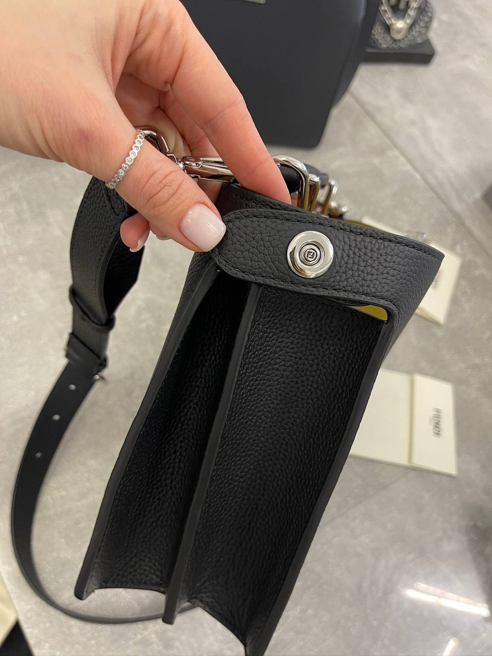 Сумка женская Fendi LUX-101754 представляет собой элегантный аксессуар в классическом стиле. Она выполнена в черном цвете с текстурированной поверхностью. Эта сумка идеально подходит для повседневного использования, дополняя любой образ.