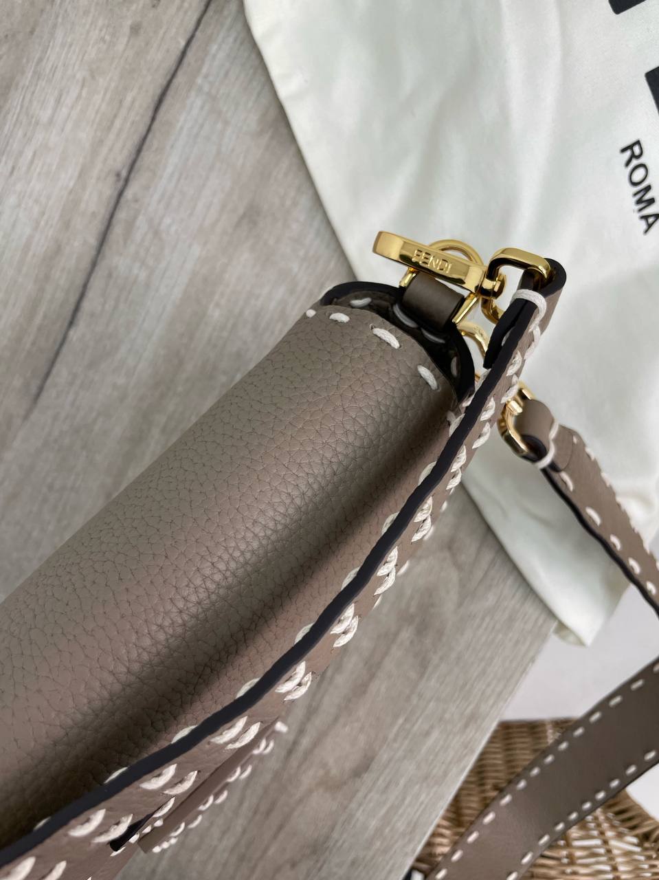 Сумка женская Fendi LUX-88059 – это воплощение элегантности и стиля от известного итальянского бренда. Сумка выполнена в нежном серо-коричневом цвете с текстурой, создающей изысканный внешний вид. Она прекрасно подойдет для повседневной носки, а также для особых случаев.