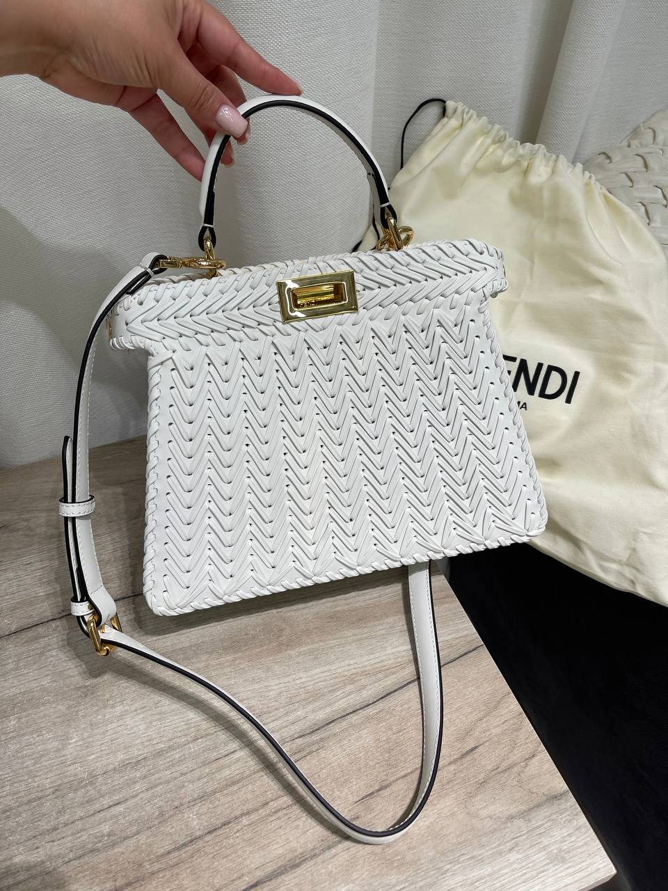 Сумка женская Fendi LUX-119855 — это стильный аксессуар от известного бренда, выполненный в элегантном дизайне. Сумка белого цвета с оригинальной текстурой, напоминающей плетение. Она станет прекрасным дополнением к вашему образу, подчеркивая утонченный вкус и индивидуальность.