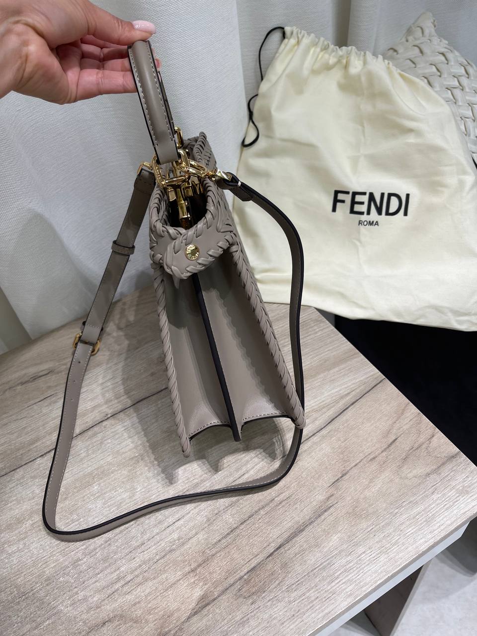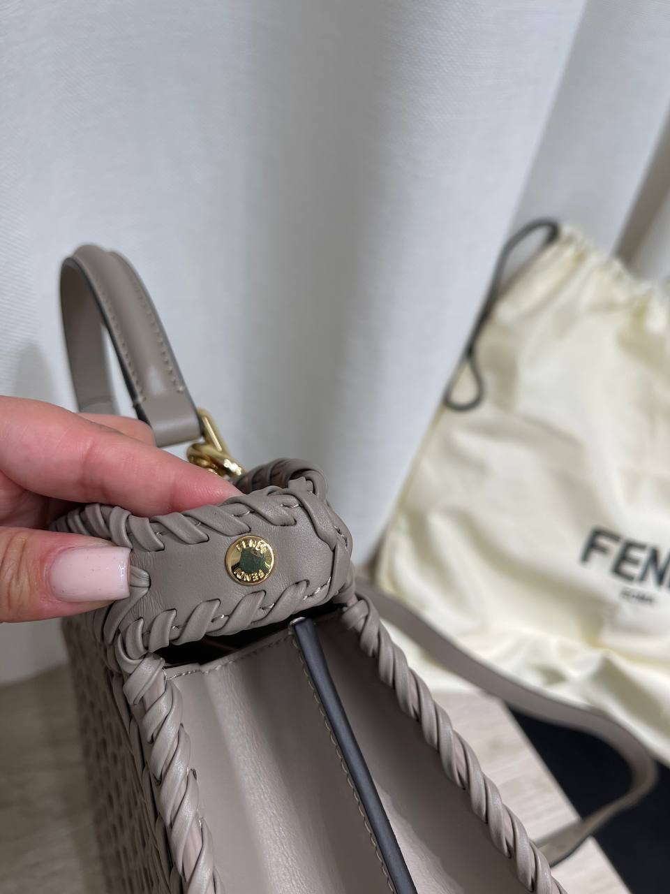 Сумка женская Fendi LUX-119856 – это воплощение элегантности и изысканности. Сумка выполнена в серо-бежевом оттенке с интересной текстурой плетения, что придает ей неповторимый шарм. Эта модель идеально подходит для повседневного использования, а также для особых случаев, подчеркивая индивидуальность своей обладательницы.