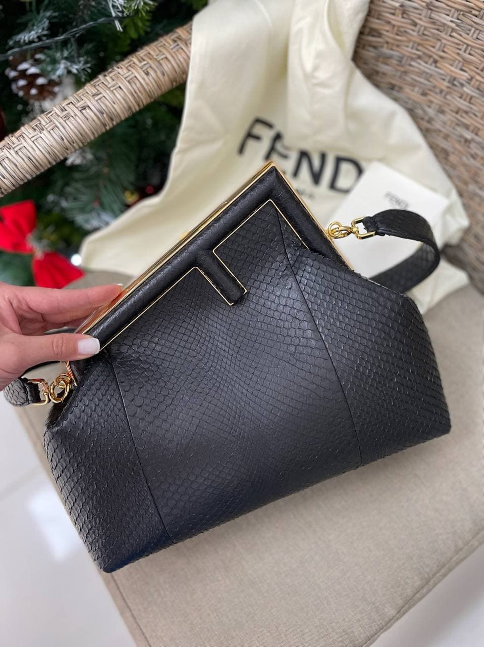 Элегантная черная женская сумка Fendi LUX-61202 выполнена в изысканном стиле, подходящем как для деловых встреч, так и для вечерних выходов. Ее текстура, напоминающая кожу рептилии, в сочетании с золотистой фурнитурой придает ей роскошный вид. Эта модель идеально дополнит ваш образ, добавив нотку утонченности и гламура.
