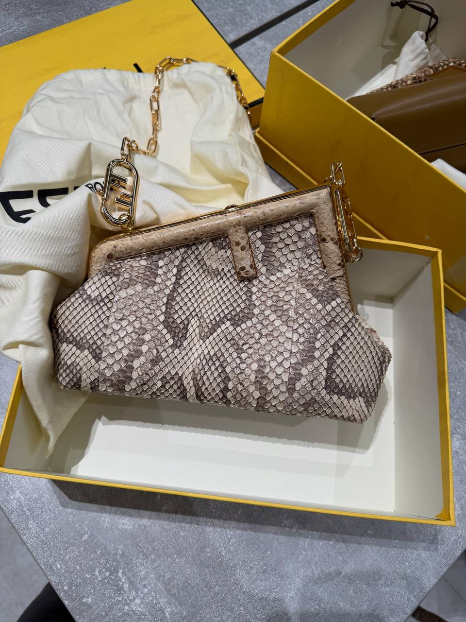 Сумка женская Fendi – это стильный аксессуар, который подчеркнет индивидуальность и добавит элегантности любому образу. Модель выполнена в оригинальном дизайне с имитацией змеиной кожи.