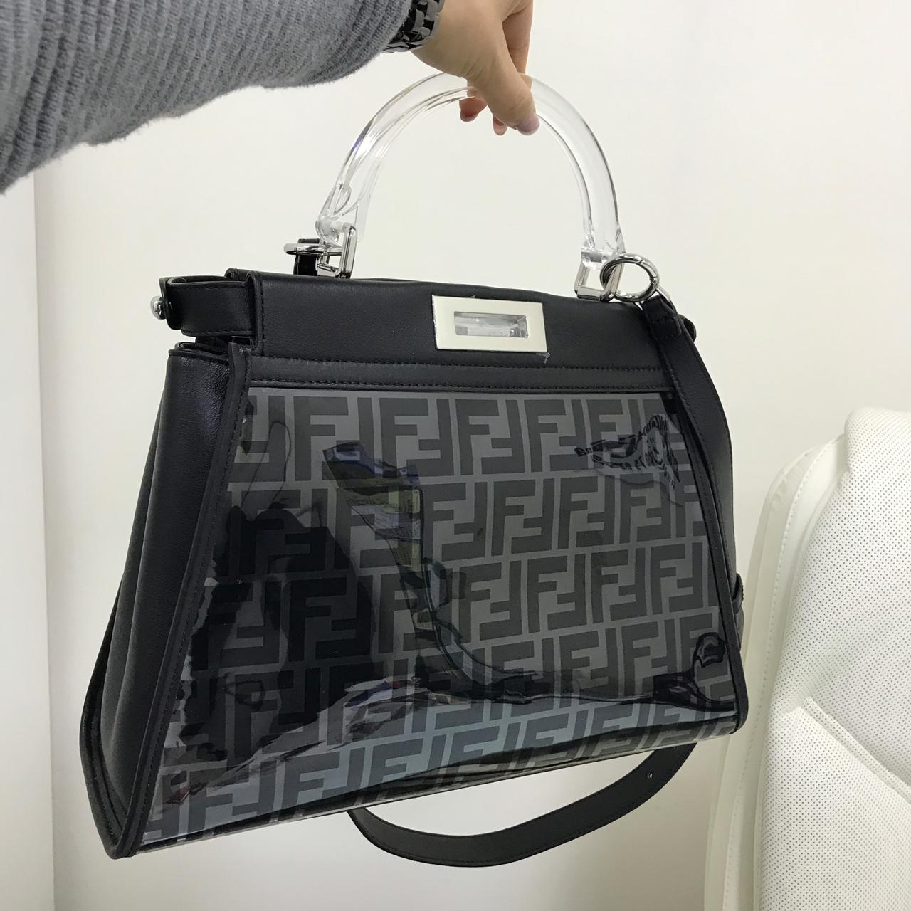 Эта женская сумка Fendi LUX-12961 представляет собой стильный аксессуар, сочетающий классический дизайн с современными материалами. Прозрачные вставки с фирменным логотипом бренда придают модели оригинальность и узнаваемость, делая ее модным дополнением к любому образу.
