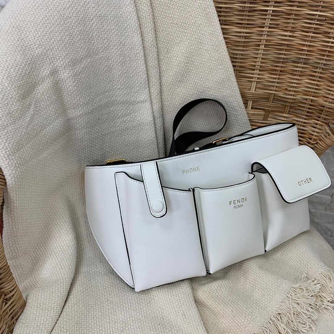 Женская сумка Fendi LUX-15496 — это стильный и практичный аксессуар, выполненный в классическом белом цвете. Ее дизайн отличается минимализмом и элегантностью, что позволяет легко сочетать ее с различными образами. Наличие нескольких внешних карманов, включая отсек с надписью "PHONE" и "OTHER", добавляет функциональности. Эта сумка идеально подойдет для повседневного использования, позволяя удобно разместить все необходимые мелочи.