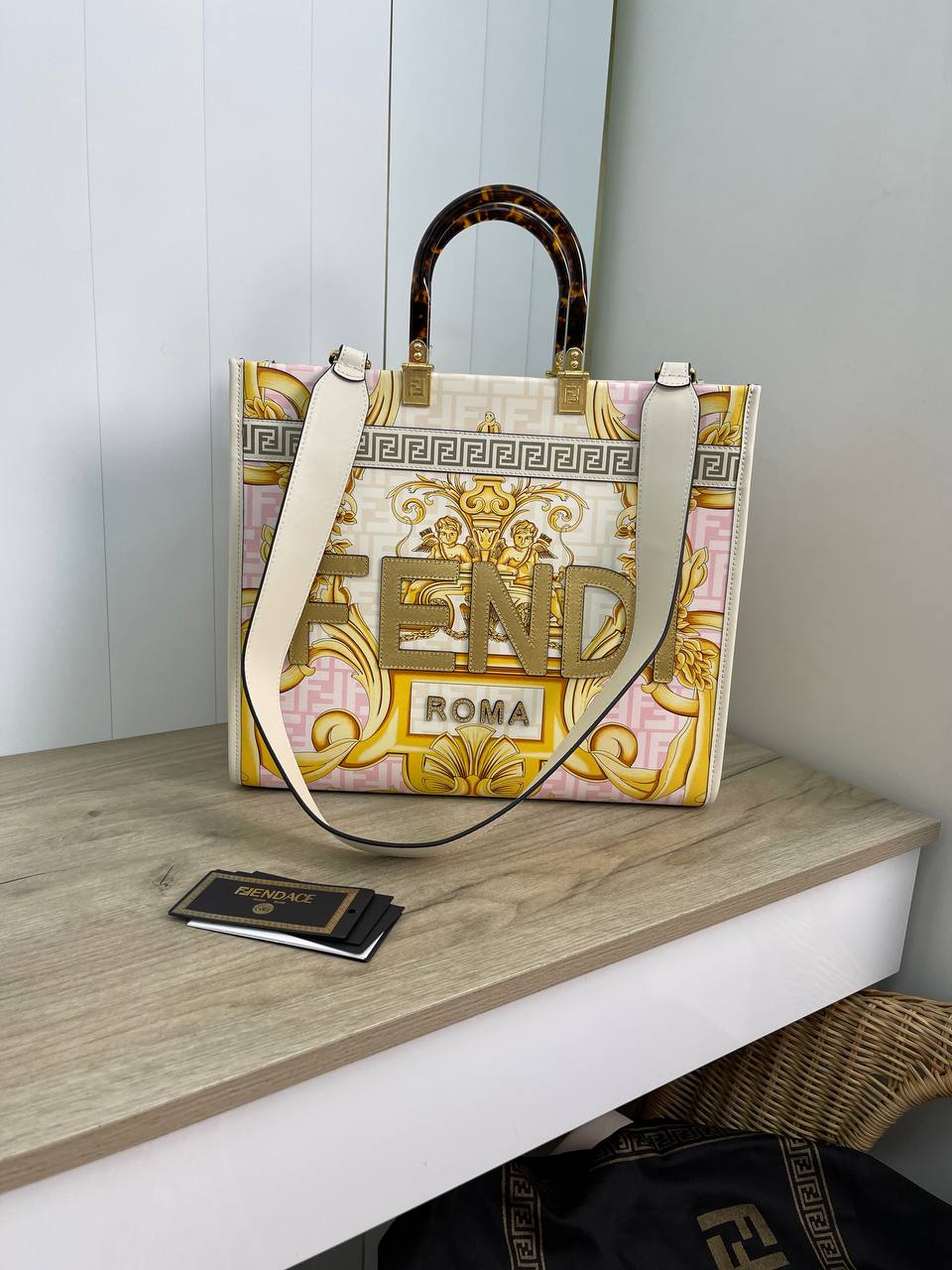Сумка женская Fendi LUX-74725 — элегантный аксессуар от известного бренда. Сумка выполнена в светлых тонах с ярким графическим принтом, который придает ей роскошный и запоминающийся вид. Дизайн сумки сочетает в себе классические элементы и современные тенденции, что делает ее идеальным выбором для различных образов.