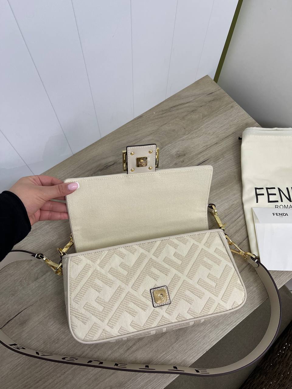 Сумка женская BAGUETTE Fendi LUX-82602 - это изысканный аксессуар, который сочетает в себе элегантность и функциональность. Сумка выполнена в кремовом цвете с фирменным узором бренда. Эта сумка идеально подходит для повседневного использования, дополняя любой образ.