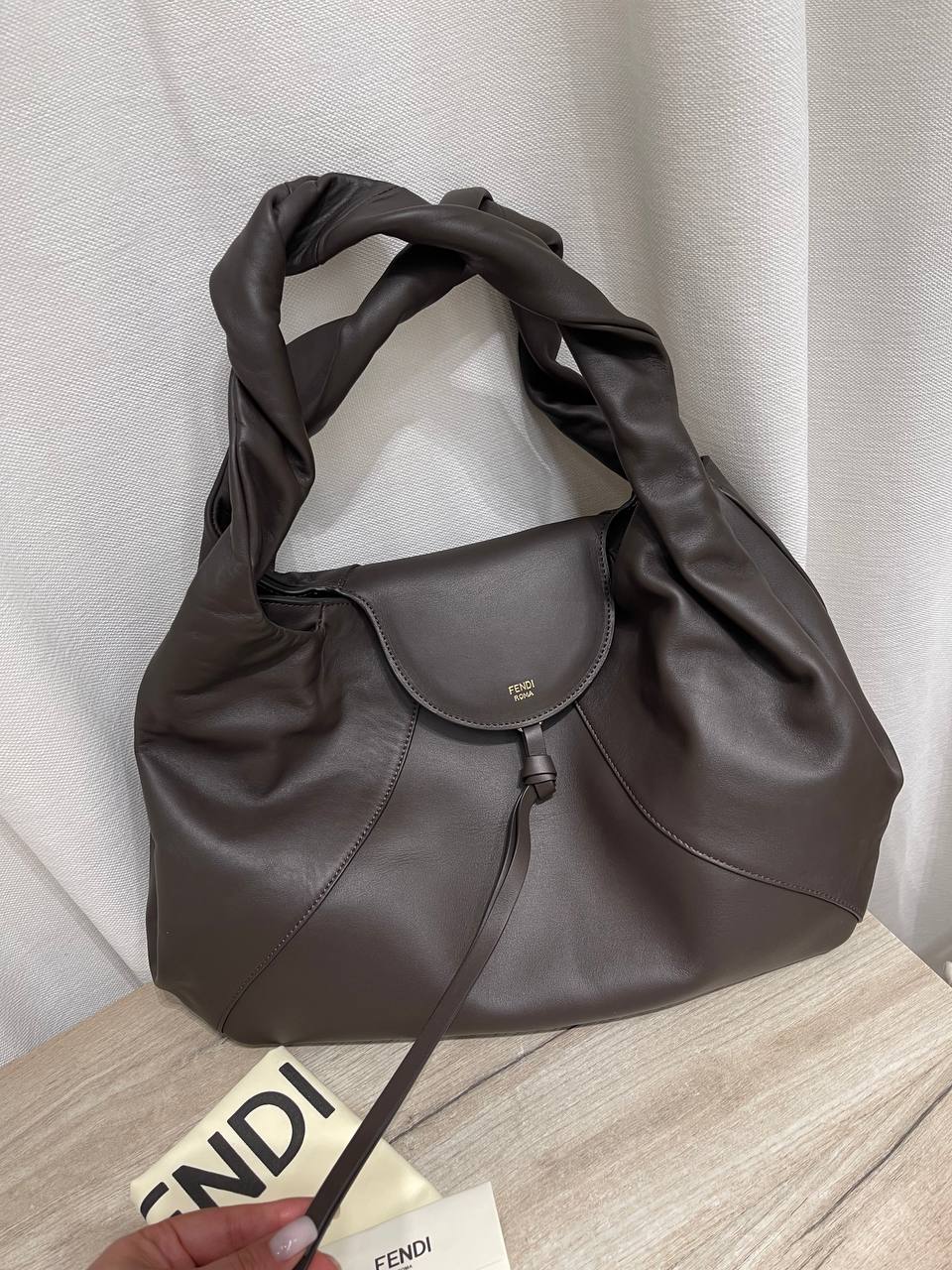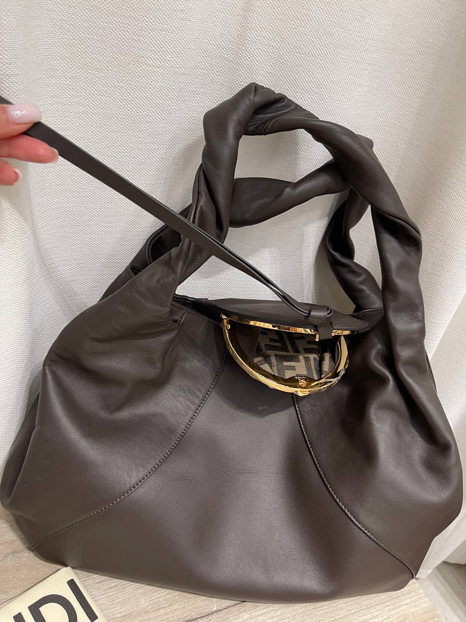 Fendi Spy – элегантная женская сумка, сочетающая в себе изысканность и практичность. Модель отличается оригинальным дизайном ручки и утонченной формой. Эта сумка станет стильным дополнением к любому образу.