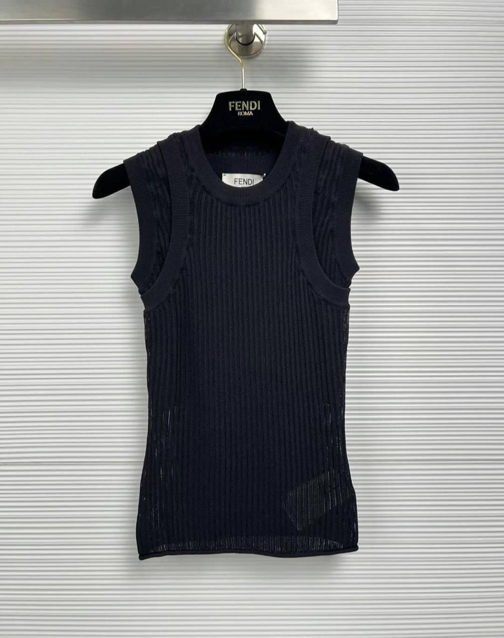 Топ Fendi LUX-91012 - это элегантный и стильный предмет гардероба. Данный топ выполнен в классическом черном цвете и имеет текстурированный вязаный узор, который добавляет интересный визуальный эффект. Идеально подойдет для создания стильных и модных образов.