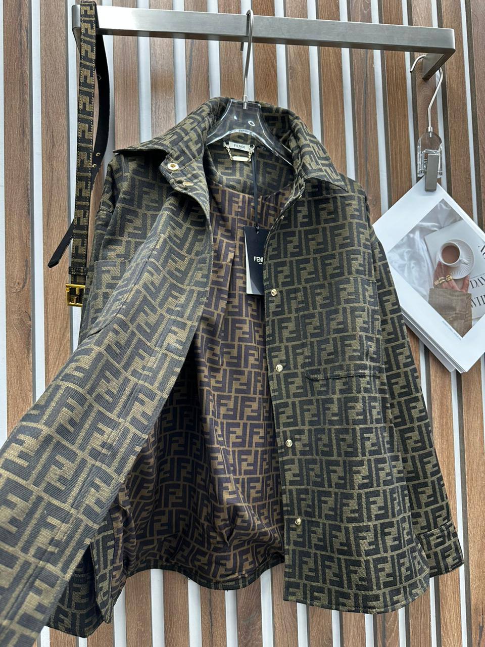 Ветровка Fendi LUX-105875 представляет собой элегантное сочетание стиля и практичности, выполненное в классическом стиле бренда. Ее дизайн включает в себя фирменный узор и пояс, подчеркивающий талию. Теплые тона придают ветровке роскошный вид и делают ее универсальной для различных образов.