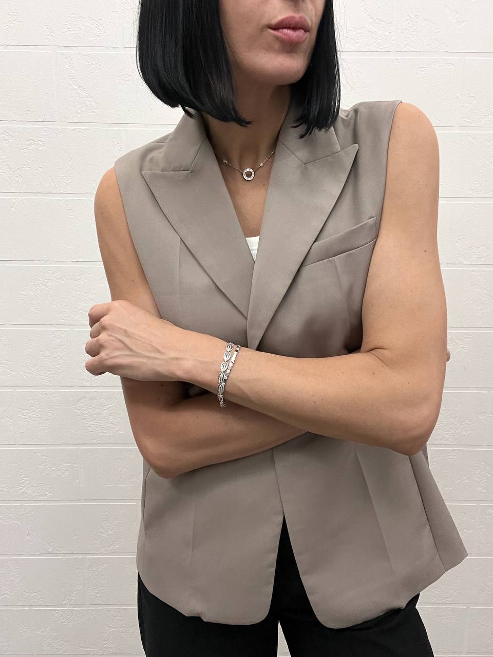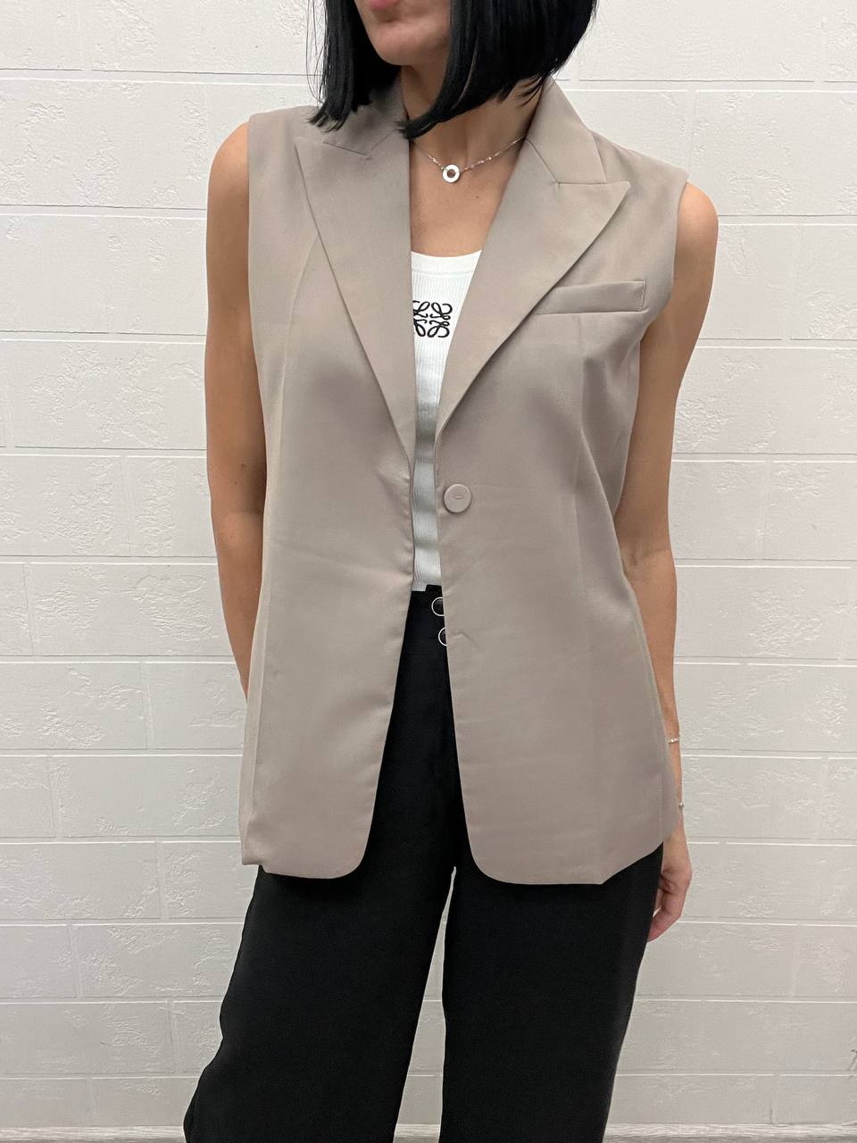 Жилет Fendi LUX-109276 представлен в элегантном стиле, выполнен в нейтральном оттенке серого. Эта модель представляет собой стильный элемент гардероба, который может быть использован для создания как повседневных, так и более формальных образов.