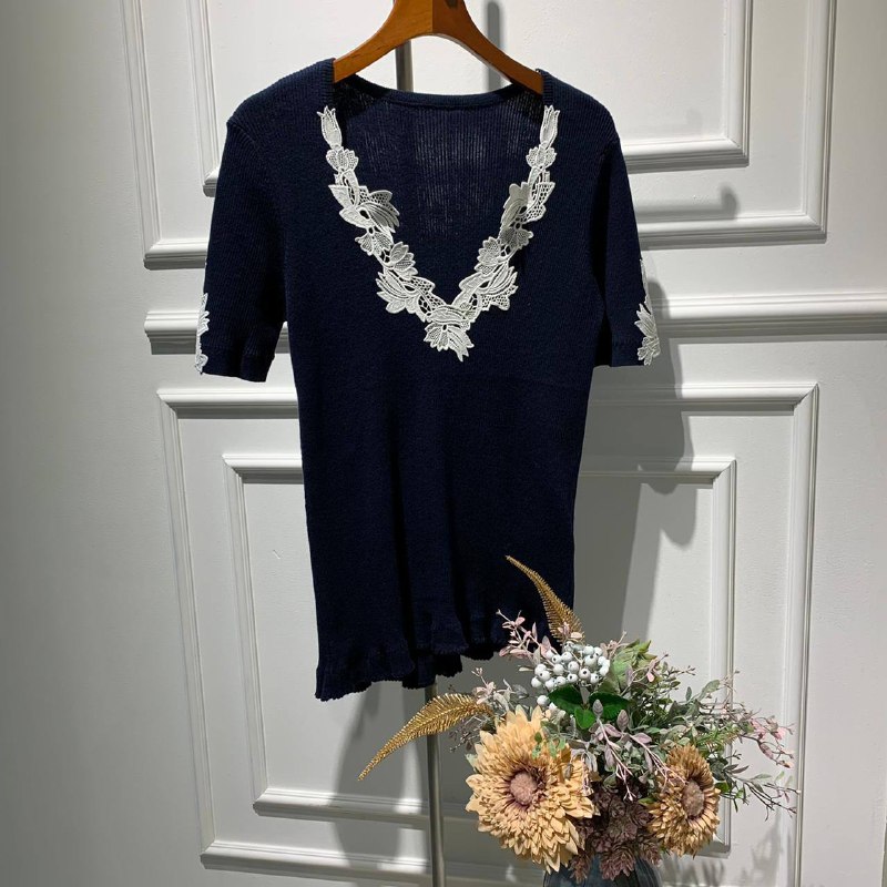 Футболка LUX-51739 – это элегантная модель темно-синего цвета с контрастной белой кружевной отделкой, которая придает ей изысканный вид. Укороченный рукав и V-образный вырез, украшенный ажурным узором, делают эту футболку идеальным выбором для создания женственных и утонченных образов. Этот стильный топ подходит как для повседневного ношения, так и для особых случаев, легко сочетаясь с различными элементами гардероба.