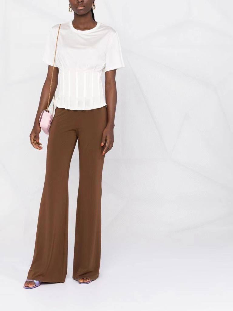 Эта белая футболка от бренда LUXE-CRIME с артикулом LUX-69274 представляет собой стильный топ с акцентом на талии. Верхняя часть выполнена в классическом стиле футболки с короткими рукавами, а нижняя часть имеет элегантный корсетный дизайн с вертикальными складками, создавая женственный силуэт. Модель идеально подходит для создания как повседневных, так и более изысканных образов.