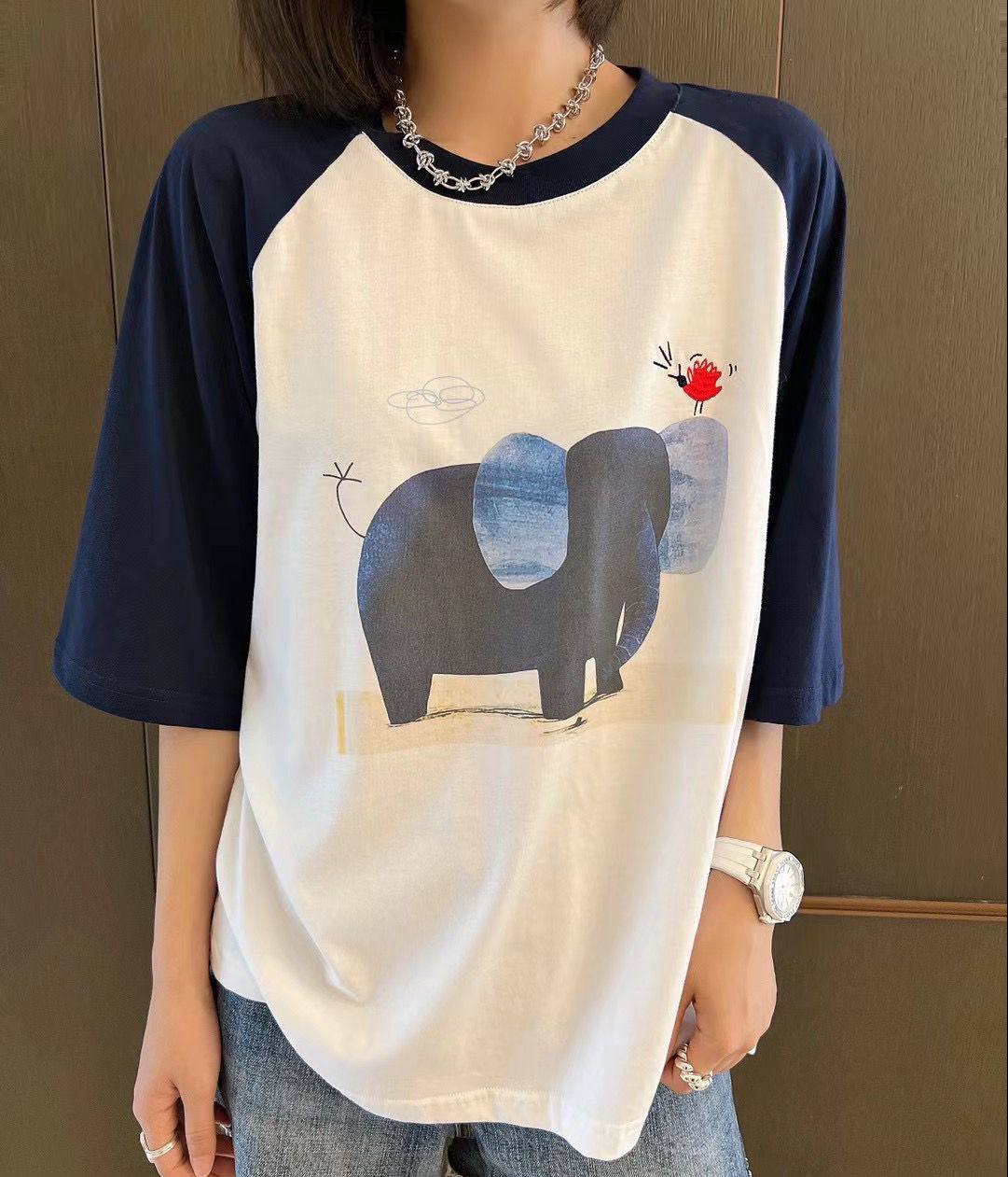 Футболка LUX-70798 от Luxe Crime — это стильная футболка с уникальным дизайном. Она выполнена в контрастных цветах: белый основной фон с темно-синими рукавами и воротником. На фронтальной части футболки изображена иллюстрация слона.