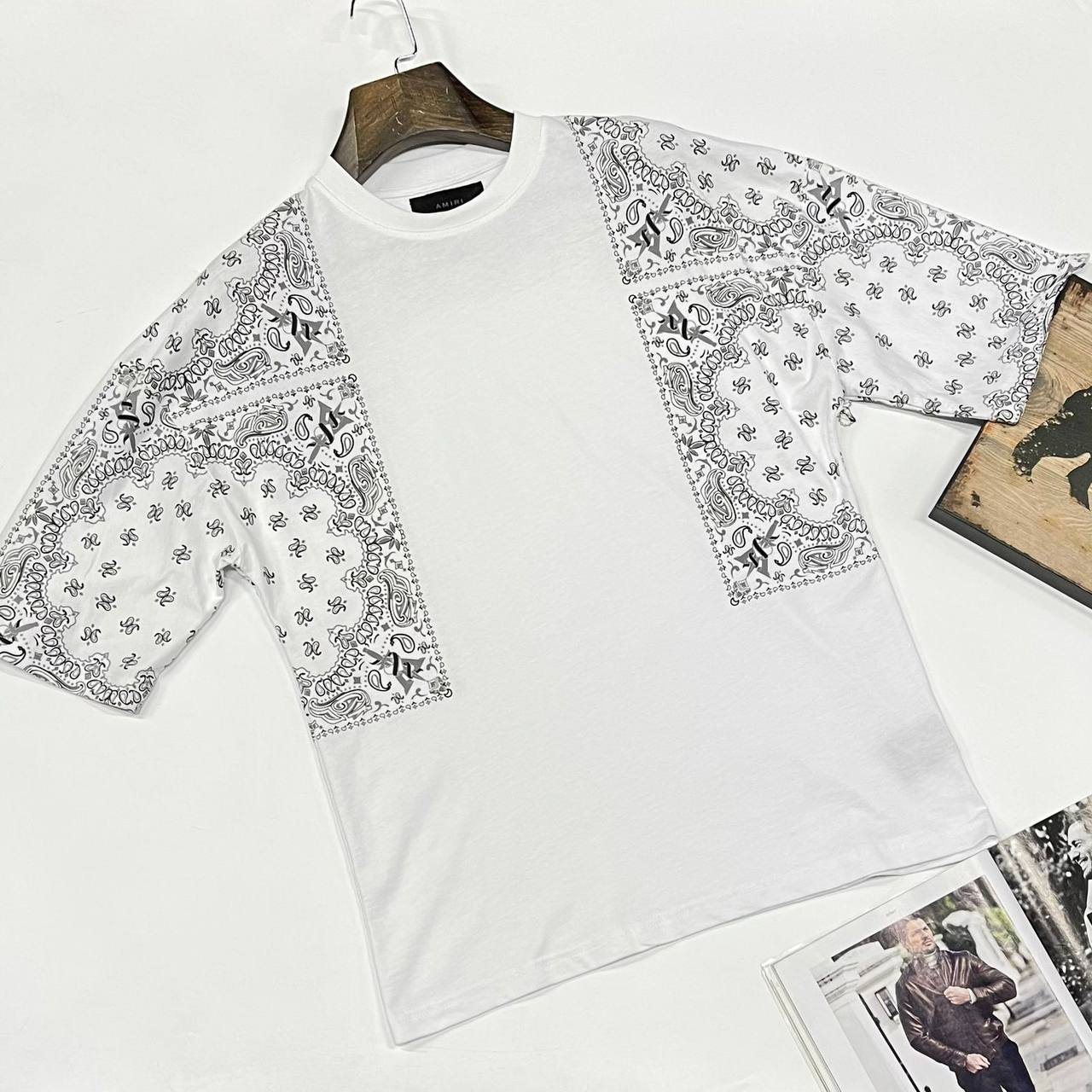 Футболка LUX-72861 — это стильная футболка, сочетающая в себе современный дизайн и комфорт. Она выполнена в белом цвете с элементами декора в виде узора пейсли на рукавах. Эта футболка отлично подойдет для создания повседневных образов.