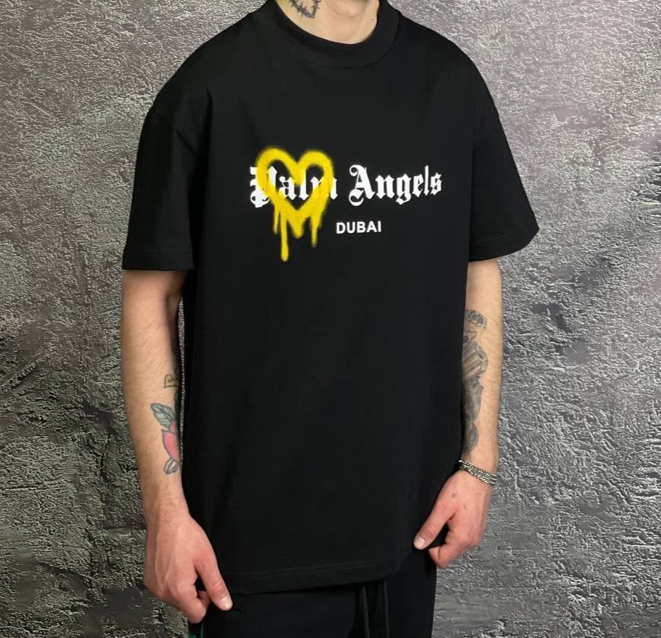 Футболка LUX-62487 от Palm Angels – это стильная и современная модель, отличающаяся оригинальным дизайном. Изделие выполнено в черном цвете и дополнено ярким принтом в виде желтого сердца с надписью "Palm Angels" и "DUBAI", выполненной в характерном для бренда стиле. Эта футболка идеально подойдет для создания трендовых образов в уличном стиле.