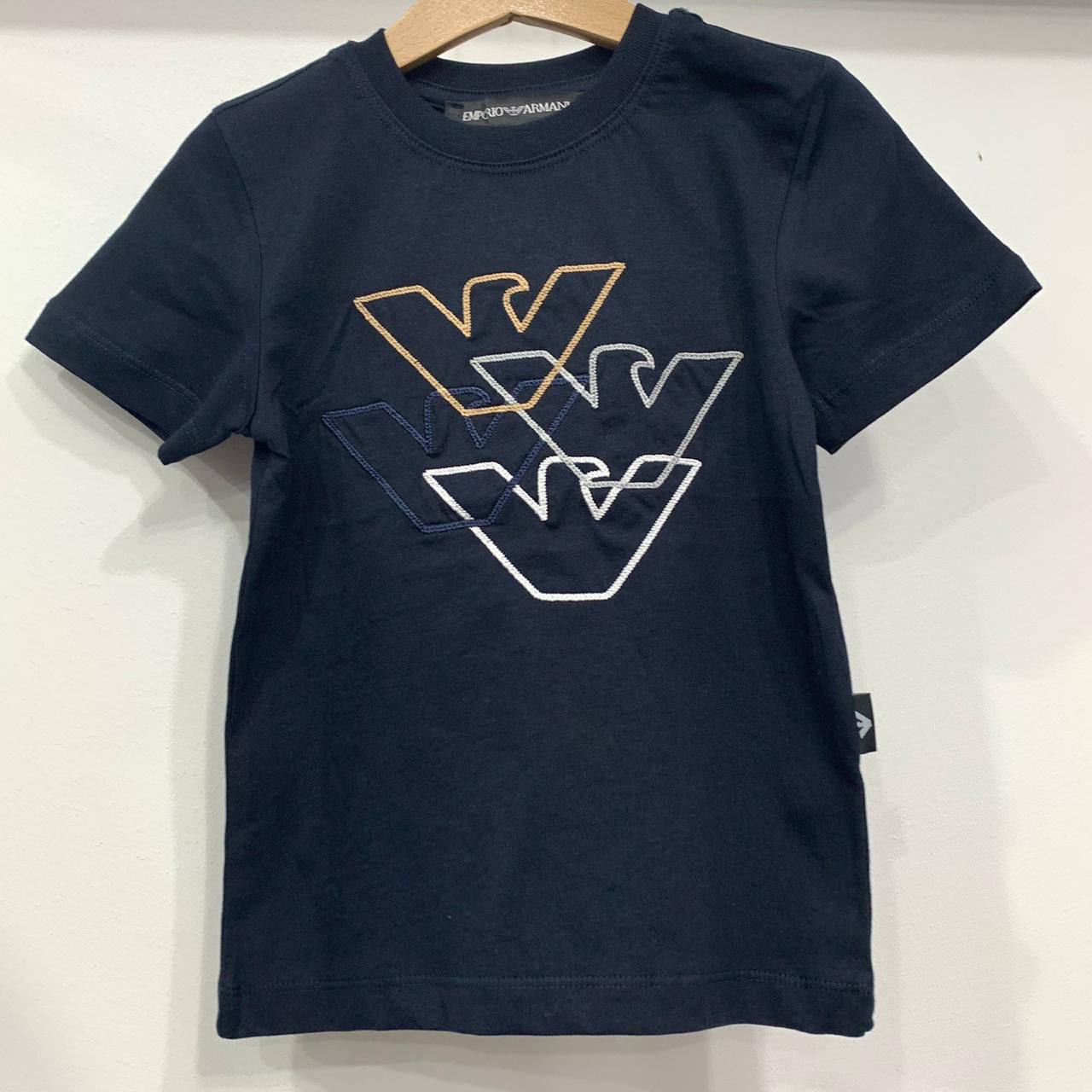 Футболка Armani LUX-102170, представленная на изображении, — это стильная и удобная вещь для повседневной носки. Футболка выполнена в классическом стиле, темно-синего цвета, с контрастным логотипом бренда на груди.