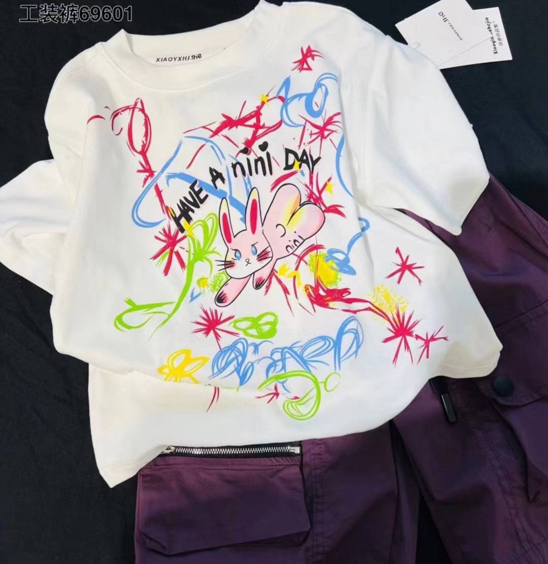 Футболка LUX-106355 представляет собой стильную белую футболку с ярким принтом в стиле граффити. Дизайн включает в себя красочные надписи и милый рисунок зайчика, что делает ее идеальным вариантом для создания ярких повседневных образов. Футболка имеет универсальный крой, обеспечивающий комфорт и свободу движений.