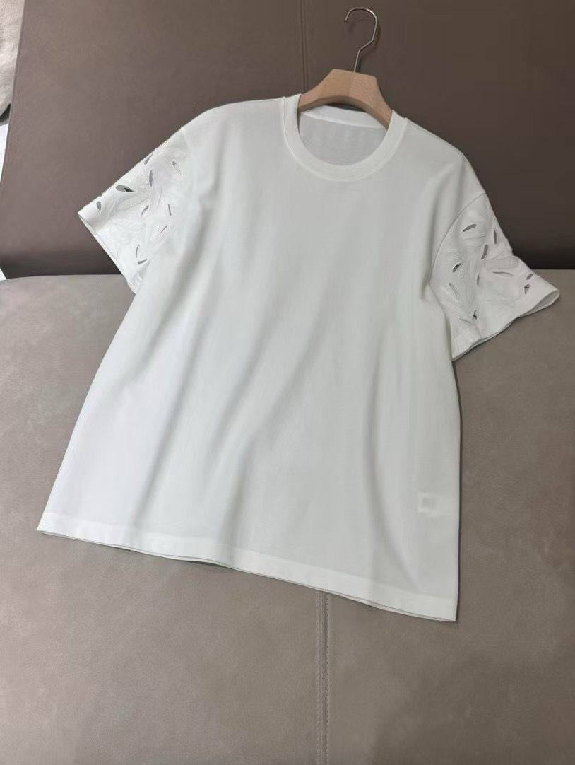 Футболка LUX-117382 представляет собой стильную белую футболку с круглой горловиной. Футболка выполнена в классическом стиле, что делает ее универсальной для различных образов. Белый цвет придает ей свежий вид, а декор на рукавах добавляет изюминку.