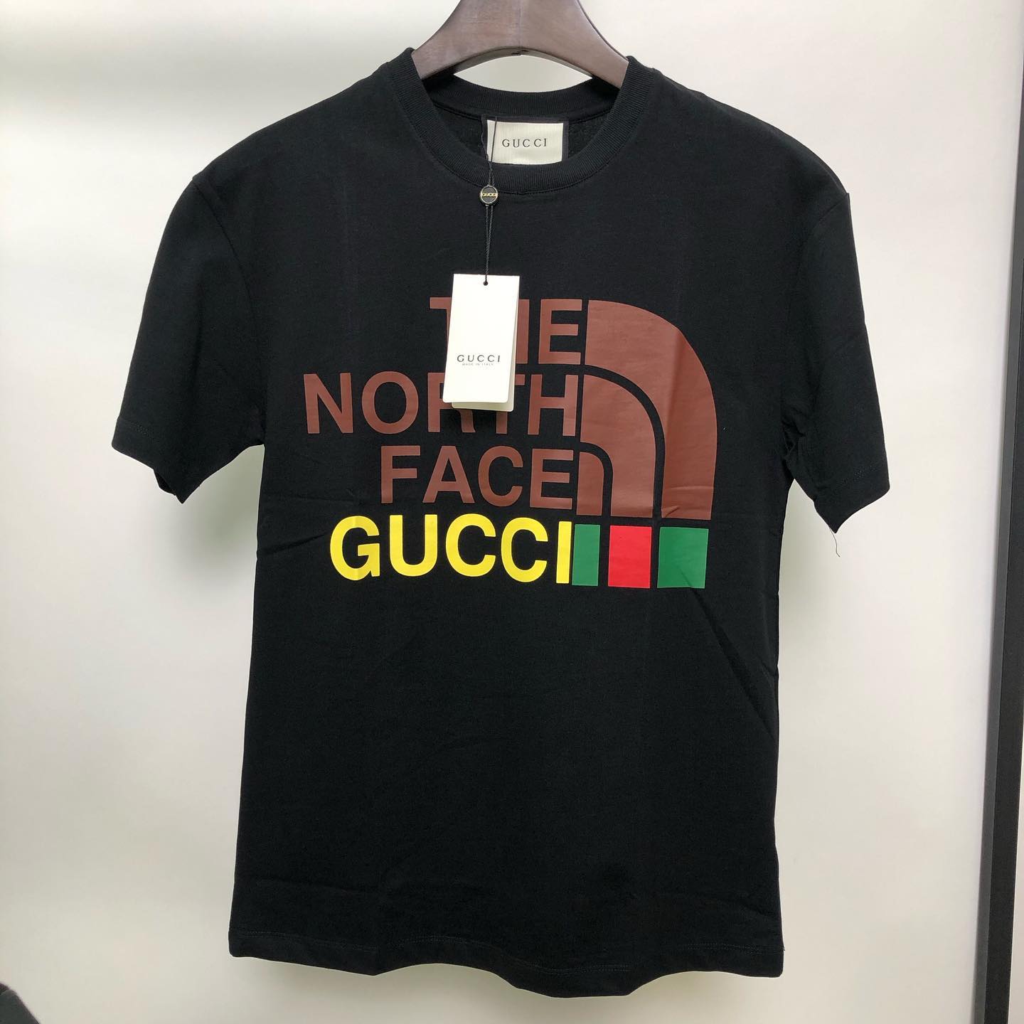 Футболка LUX-43357 от Gucci – это стильный элемент гардероба, сочетающий в себе узнаваемый дизайн бренда с эстетикой уличной моды. Модель выполнена в классическом черном цвете и украшена эффектной графической комбинацией логотипов Gucci и The North Face. Эта футболка идеально подойдет для создания актуальных повседневных образов.