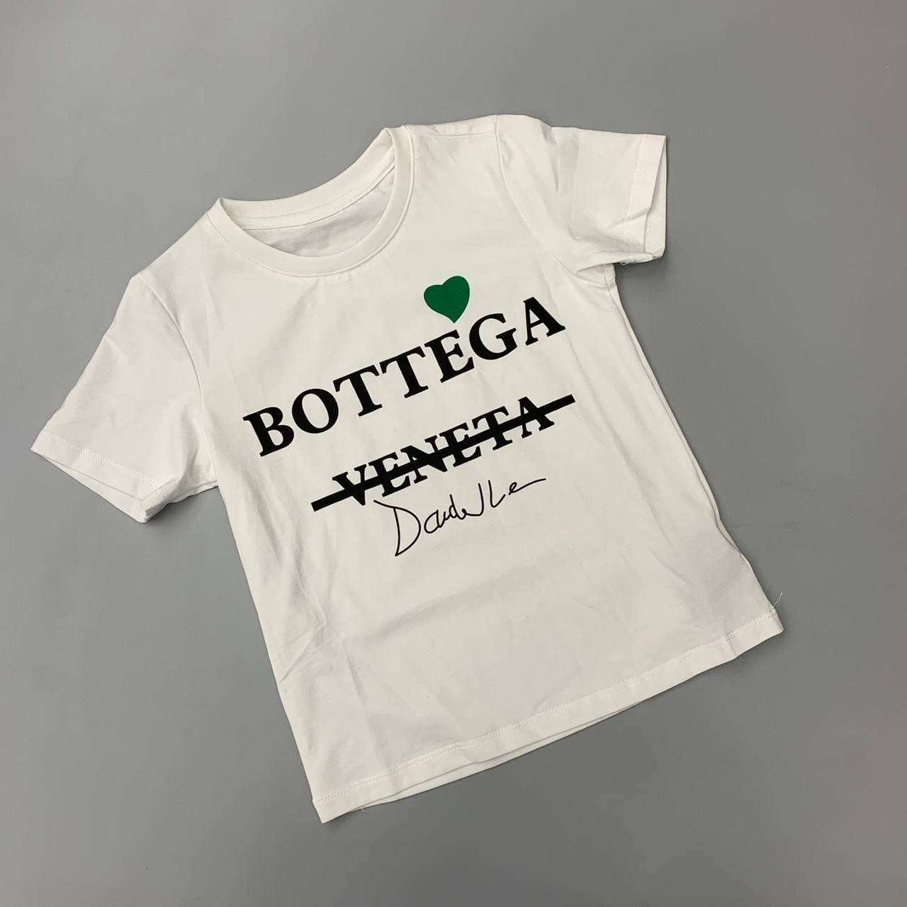 Футболка Bottega Veneta LUX-64181 – это стильный и минималистичный элемент гардероба, выполненный в повседневном стиле. Дизайн футболки с надписью "BOTTEGA VENETA" и зеленым сердцем, а также, вероятно, подписью, выглядит актуально и универсально. Она прекрасно подойдет для создания непринужденных образов на каждый день, сочетаясь с различными предметами одежды.
