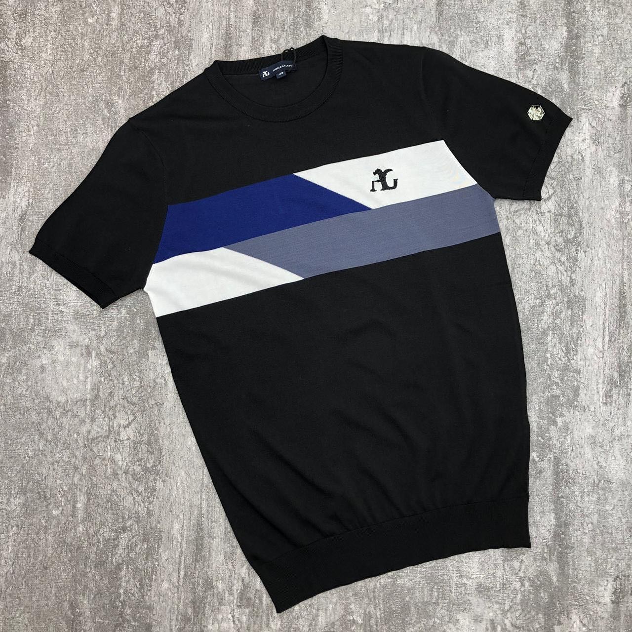 Футболка мужская LUX-31819 от бренда LUXXE-CRIME – это стильное и современное решение для повседневного гардероба. Модель выполнена в черном цвете с оригинальной диагональной полосой, включающей оттенки белого, синего и серого, что придает ей динамичный вид. Вышитый логотип бренда добавляет элегантности.