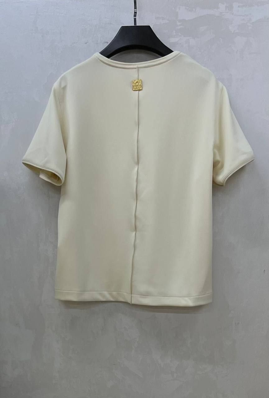 Футболка Schiaparelli LUX-120876 - стильная и элегантная вещь, которая дополнит ваш гардероб. Она выделяется своим минималистичным дизайном и акцентом в виде золотистого замка. Это отличный выбор для создания современного образа.
