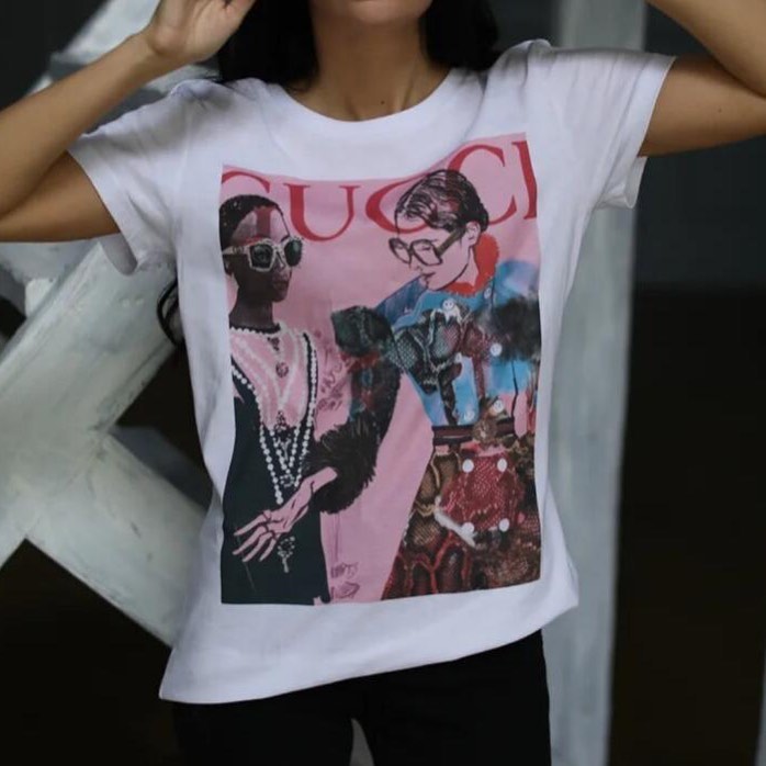 Футболка женская LUX-34137 от бренда Gucci — это стильная и модная вещь, которая станет отличным дополнением к вашему повседневному гардеробу. Дизайн футболки выполнен в современном стиле, с ярким принтом, что придает ей особую привлекательность. Она идеально подойдет для создания расслабленных, но при этом эффектных образов.