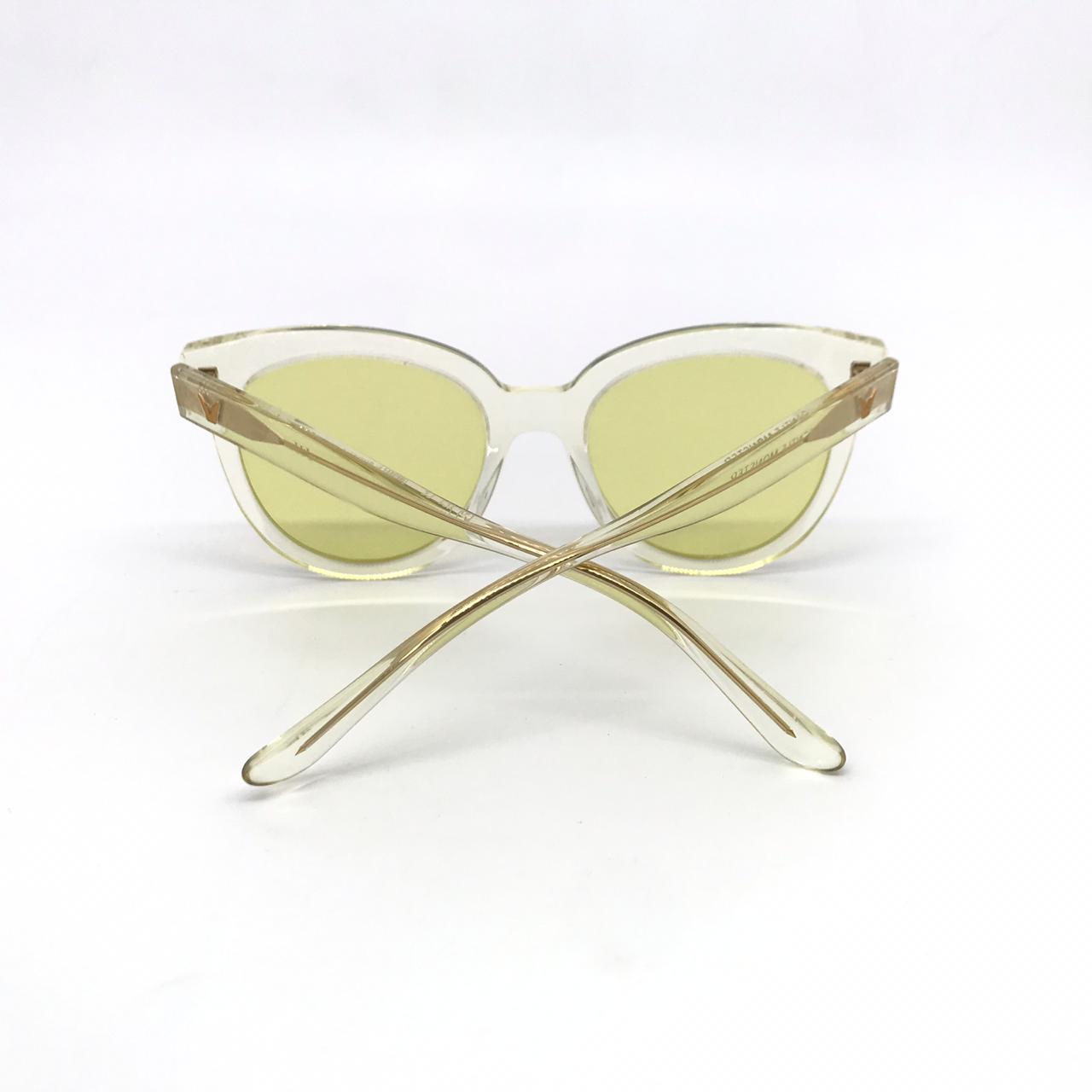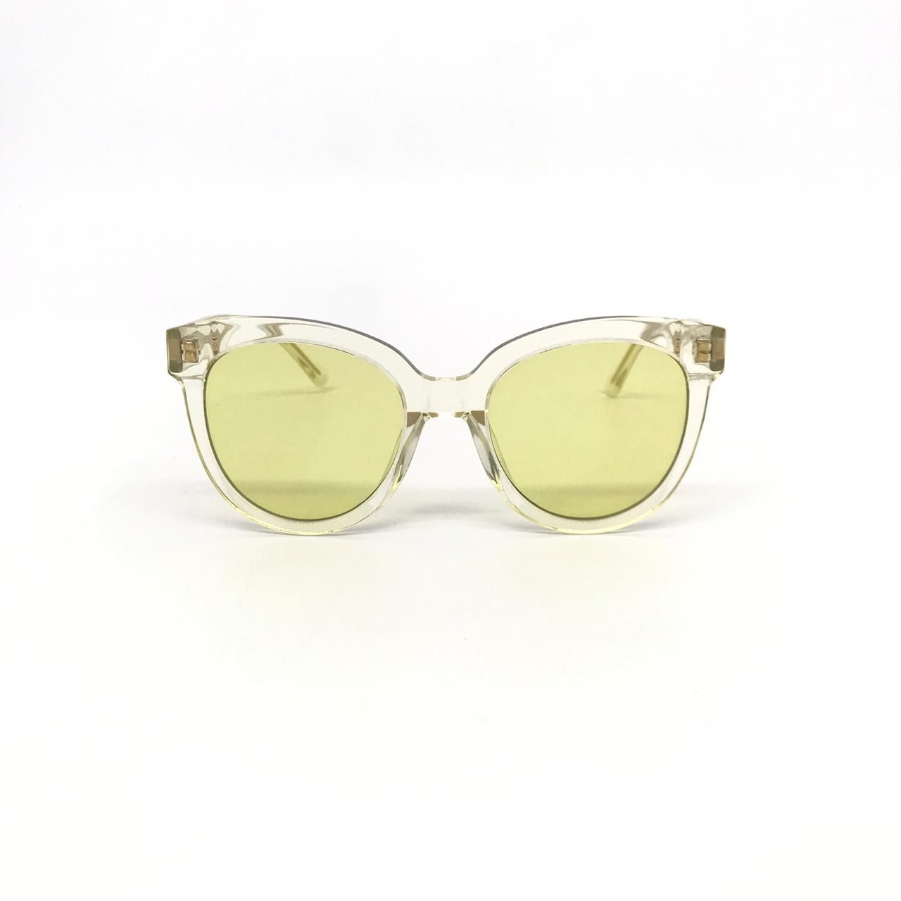 Эти очки Gentle Monster LUX-15559 представляют собой стильный аксессуар с прозрачной оправой и желтыми линзами. Их современный дизайн подчеркивает модный образ. Они идеально подходят для защиты глаз от солнца и дополнения вашего повседневного или вечернего наряда.